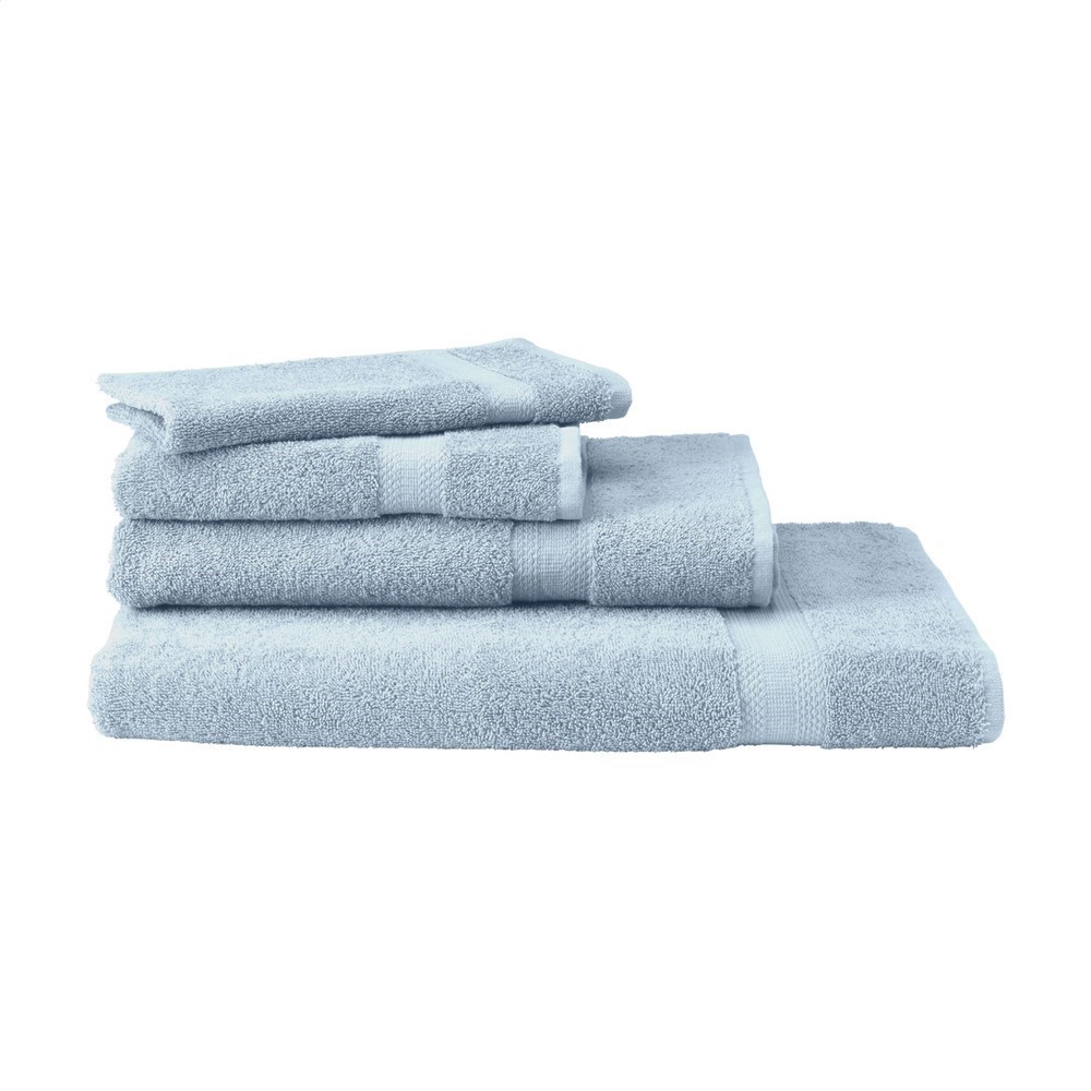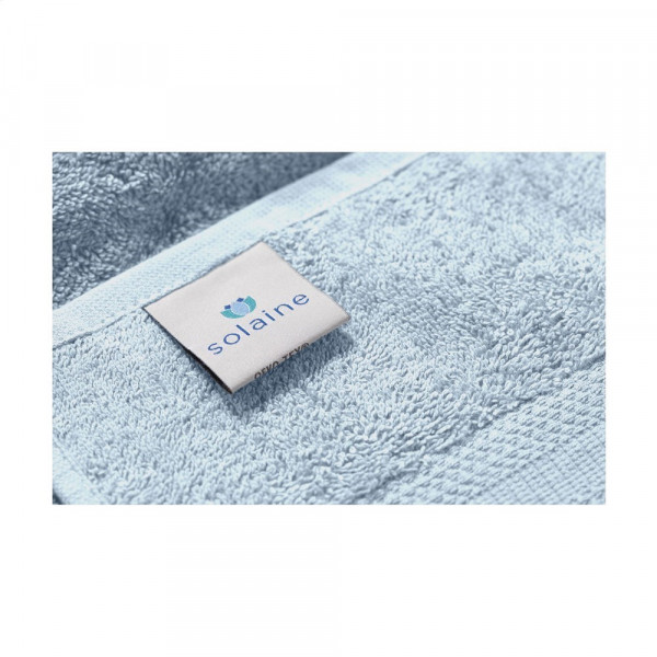 Handdoek van het merk Solaine. Zware kwaliteit badstof van 100% katoen (450 g/m²), zacht en comfortabel. Met mooi ingeweven band met fraai motief. Ter info: De mogelijkheden m.b.t. het borduren van kleine details in een logo (zoals bijvoorbeeld hele kleine letters) zijn bij borduren beperkter dan bij bedrukken. Het kan daarom voorkomen dat we je, na ontvangst van je logo, adviseren het logo te aan te passen of te vergroten.