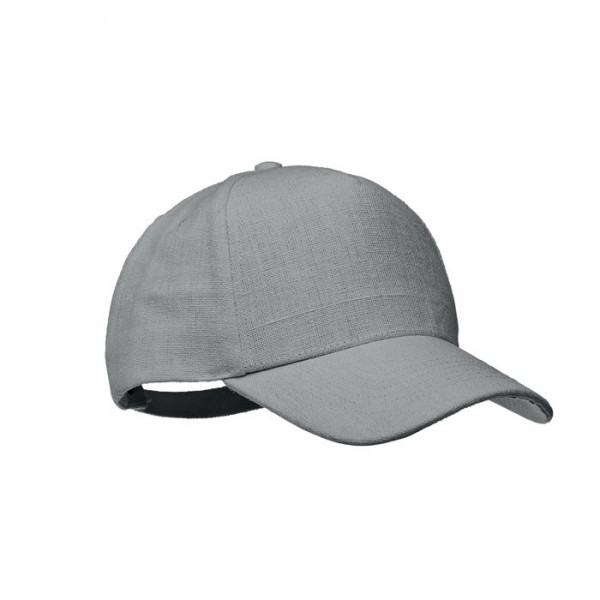 5 Panel baseball cap van 100% hennep, 370 gr/m², met messing verstelbare sluiting en 5 eyelets in de kleur van de cap. Maat 58 cm.