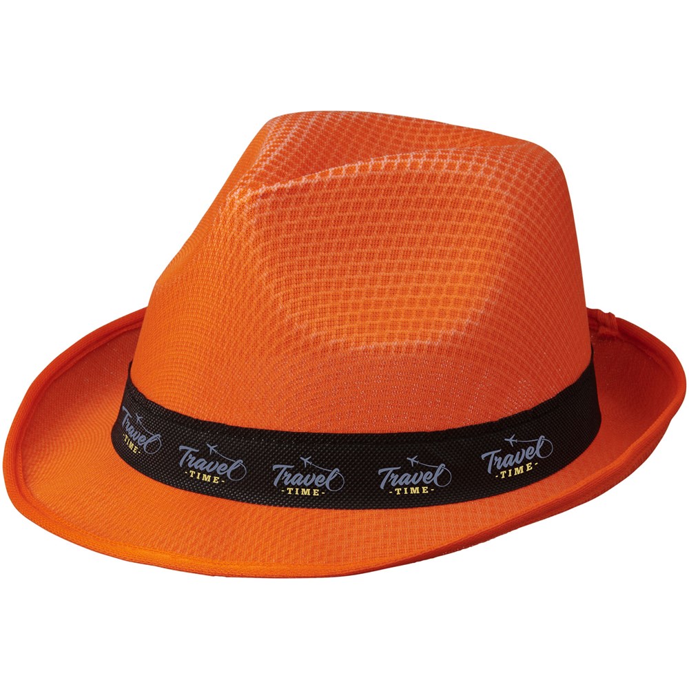 Trilby set van hoed en lint. Hoed: 100% polyester. Lint: non-woven 100 g/m² polypropyleen.