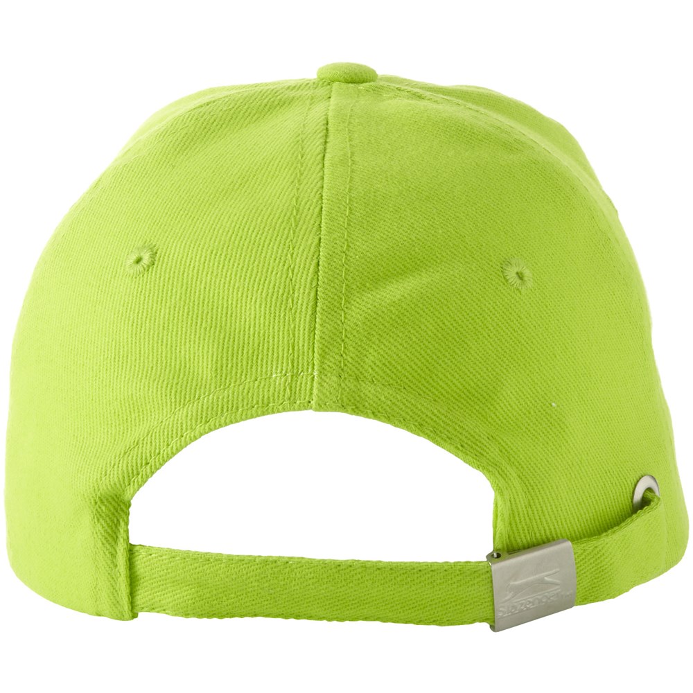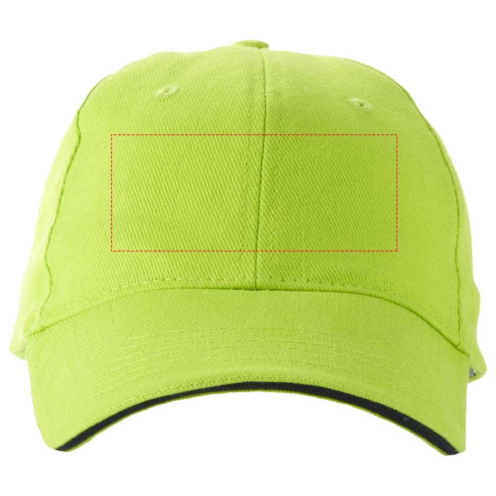 Voorgevormde klep met sandwich. Geborduurde oogjes voor ventilatie. Metalen gespsluiting. Hoofdomtrek: 58 cm.