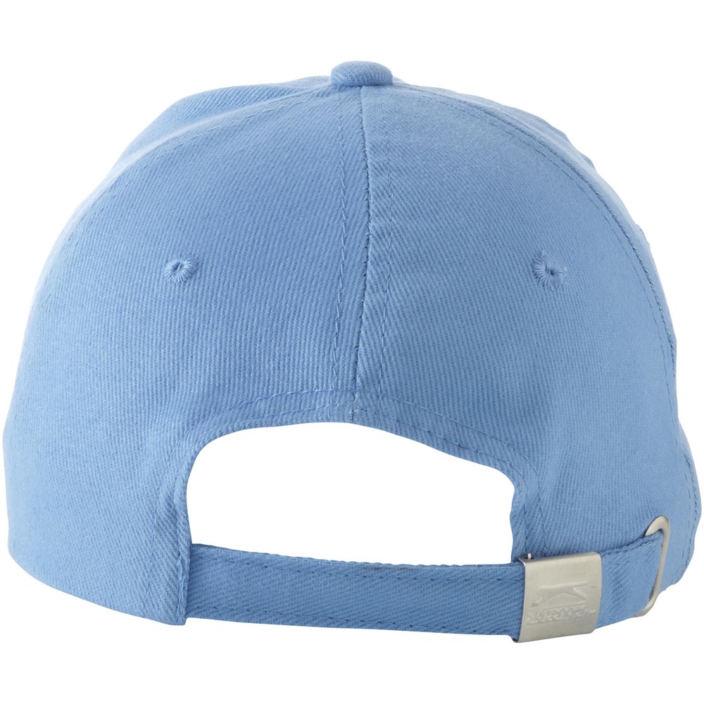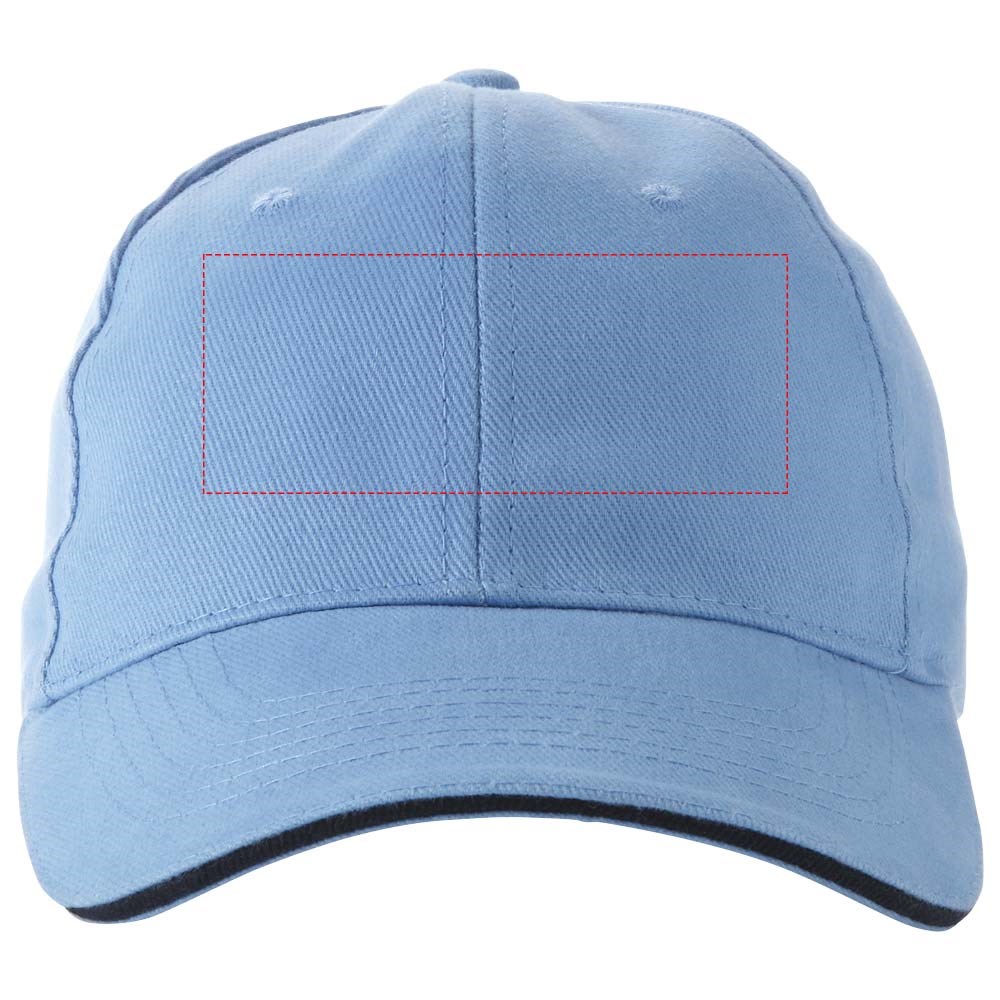Voorgevormde klep met sandwich. Geborduurde oogjes voor ventilatie. Metalen gespsluiting. Hoofdomtrek: 58 cm.