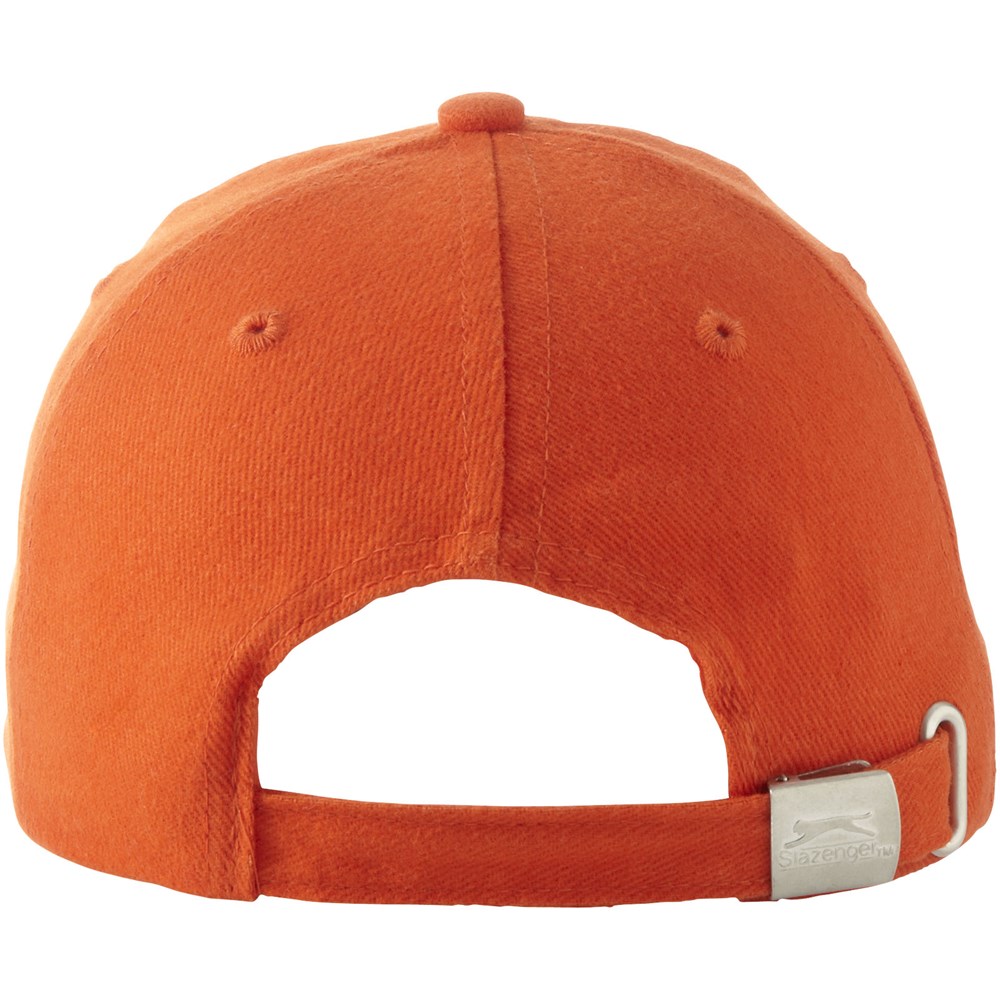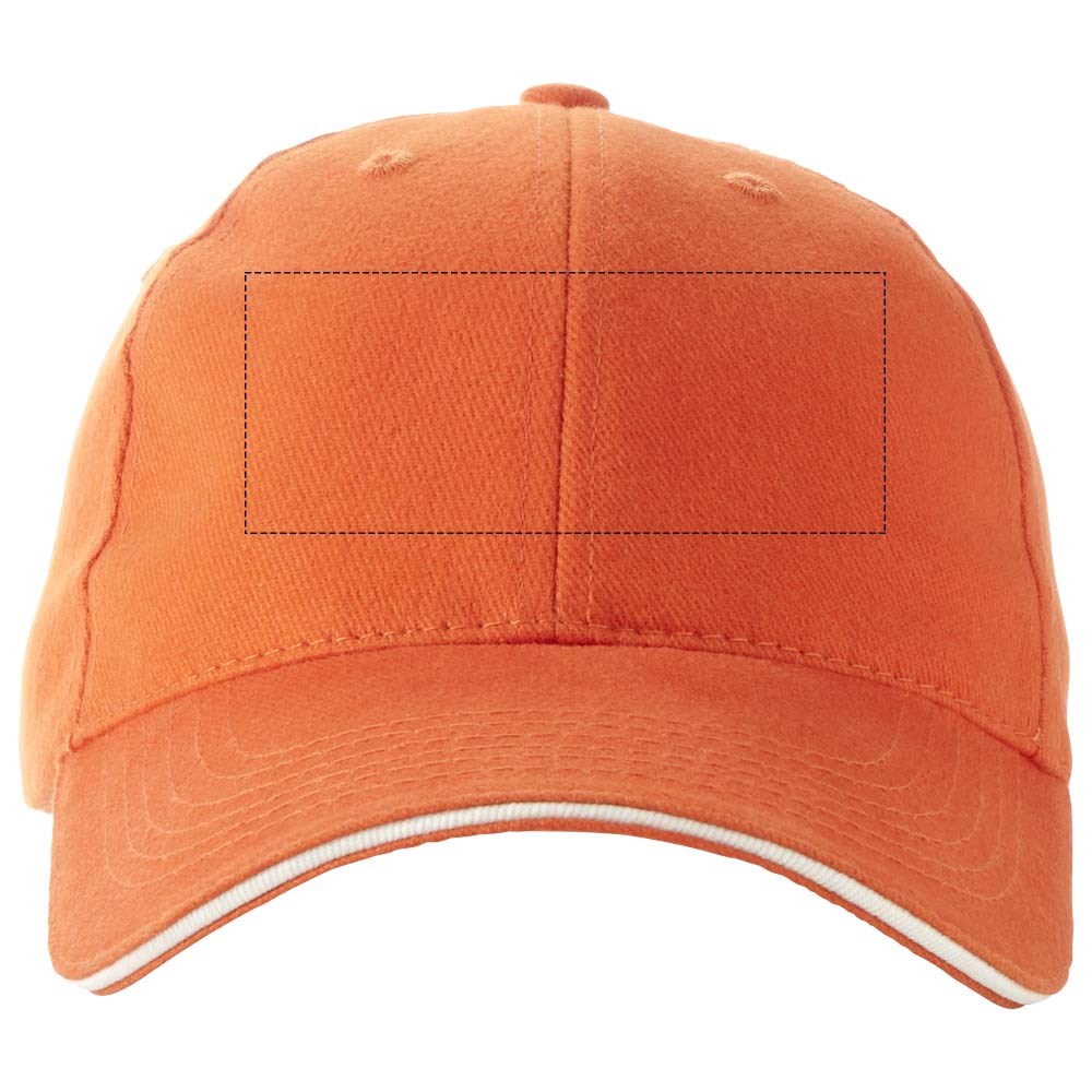 Voorgevormde klep met sandwich. Geborduurde oogjes voor ventilatie. Metalen gespsluiting. Hoofdomtrek: 58 cm.