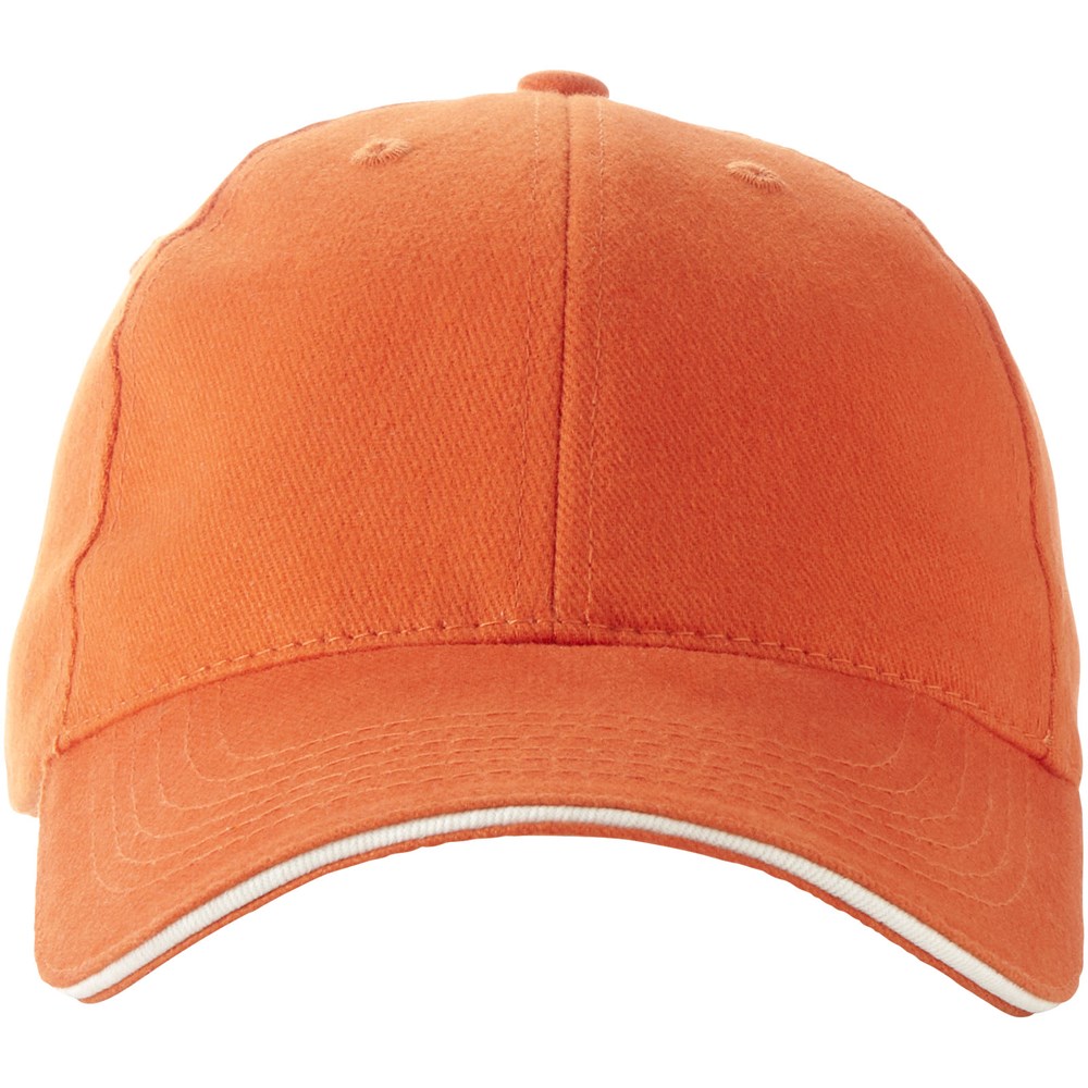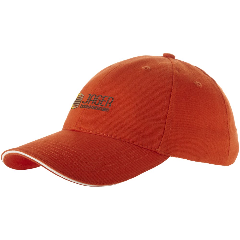 Voorgevormde klep met sandwich. Geborduurde oogjes voor ventilatie. Metalen gespsluiting.... mehr