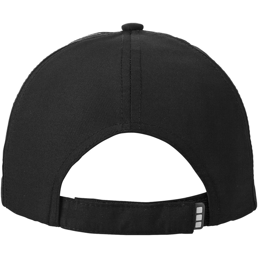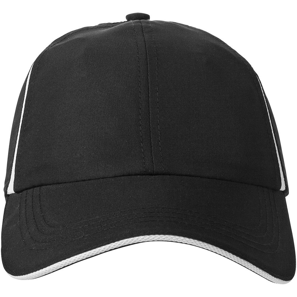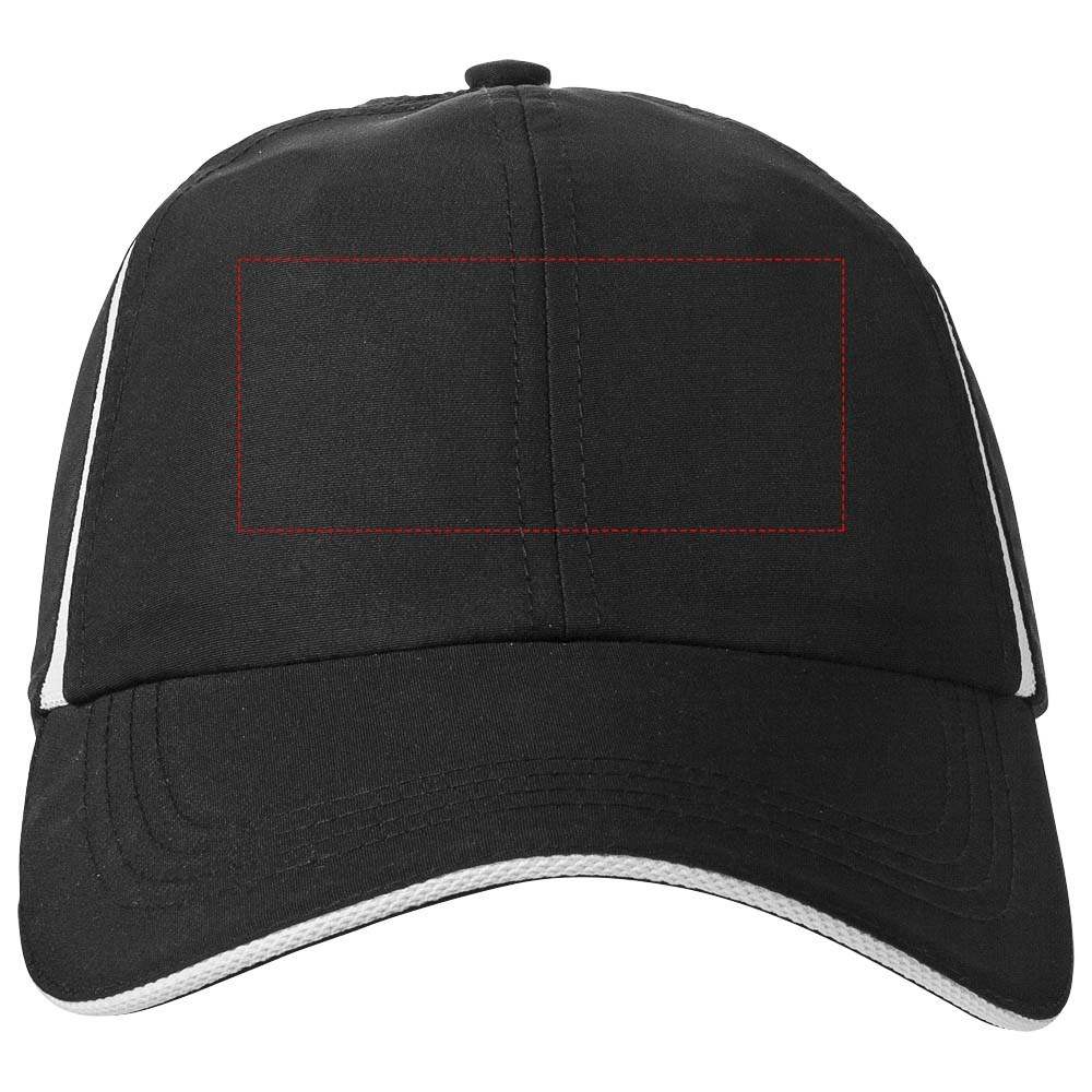 Voorgevormde klep met sandwich. Zijpanelen in mesh stof. Klittenband sluiting met rubber logoplaatje. Hoofdomtrek: 58 cm.