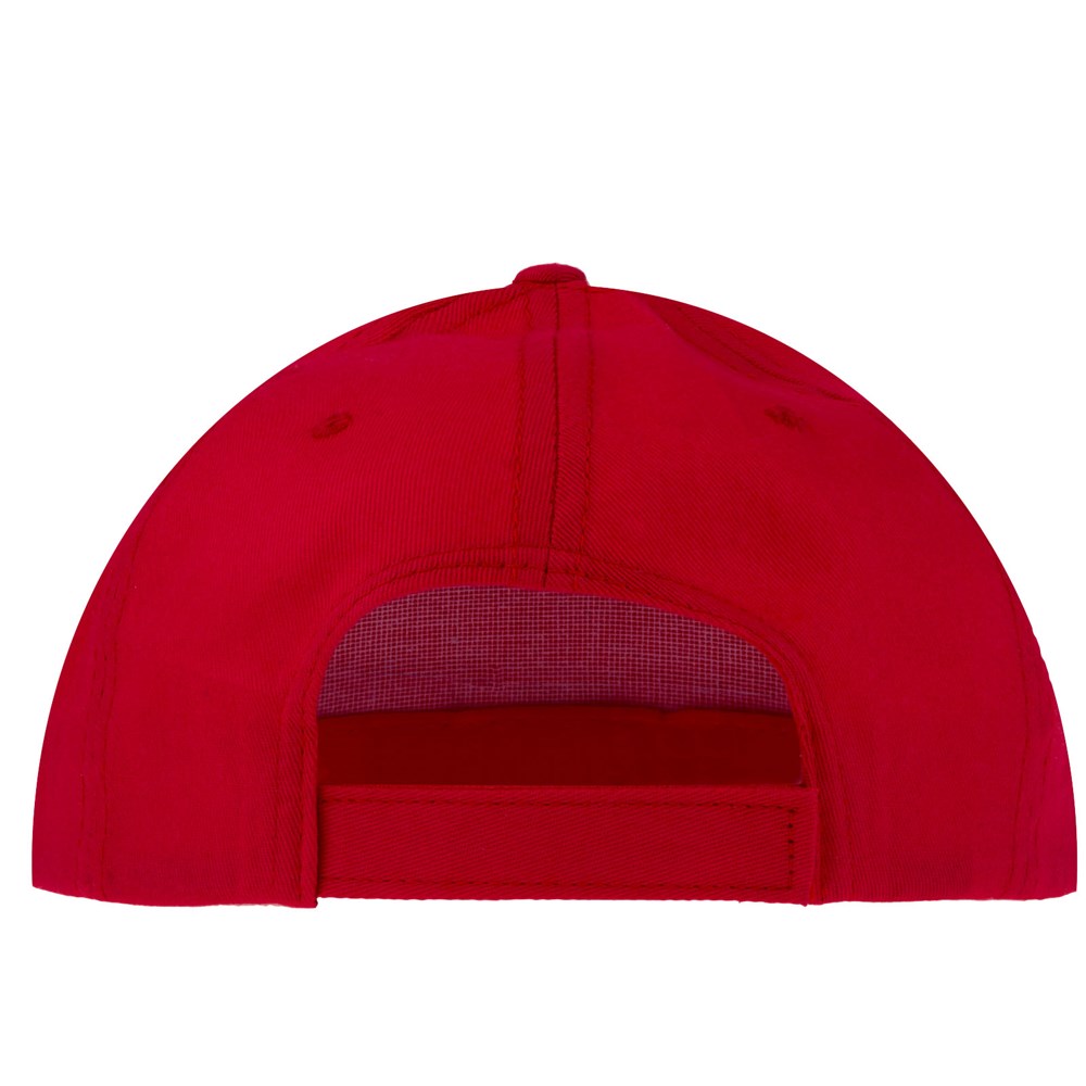 Platte klep. Geborduurde oogjes voor ventilatie. Klittenband sluiting. Hoofdomtrek: 58 cm.