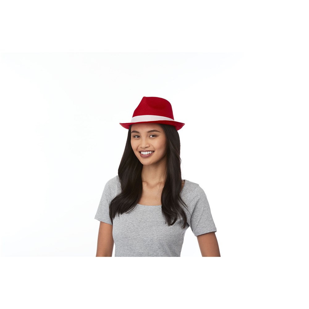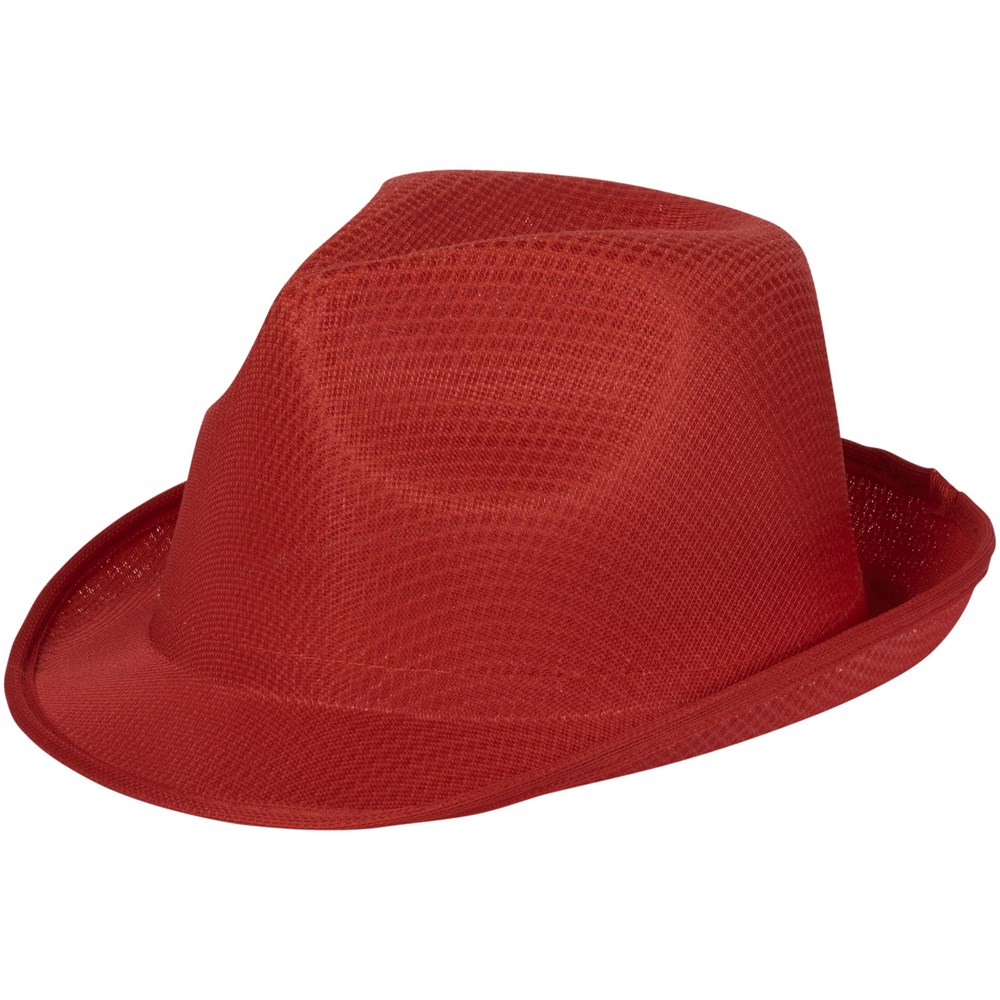 Een polyester hoed in Trilbystijl met een hoofdomtrek van 58 cm. One size fits all. Op het lint van 100 g/m² polypropyleen is ruimte voor uw merk of boodschap.