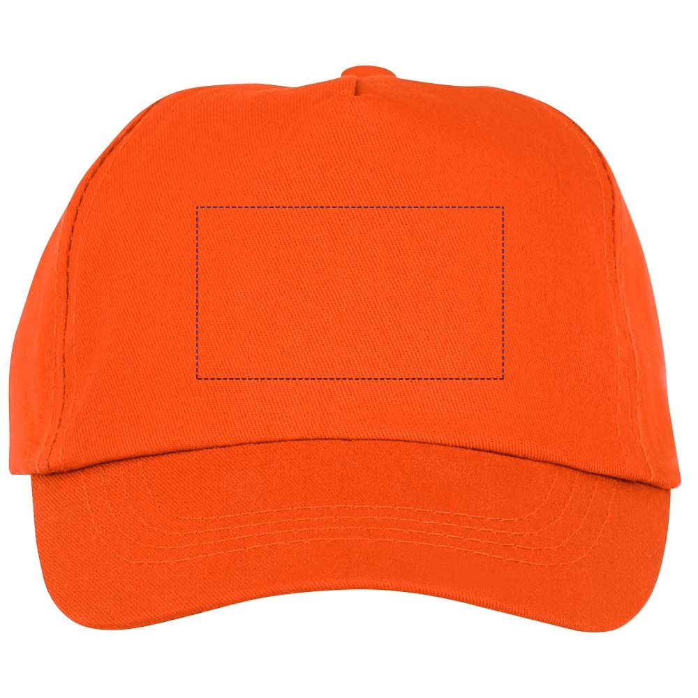 Geborduurde oogjes voor ventilatie. Klittenband sluiting. Hoofdomtrek: 54 cm.