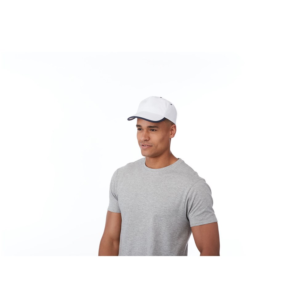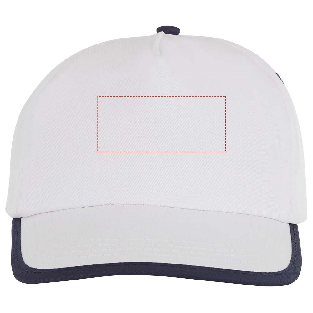 Piping details. Geborduurde oogjes voor ventilatie. Klittenband sluiting. Hoofdomtrek: 58 cm.