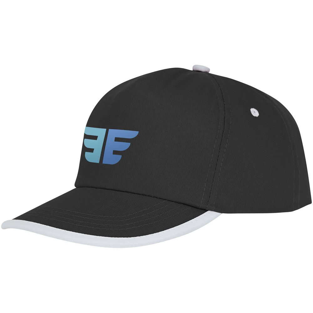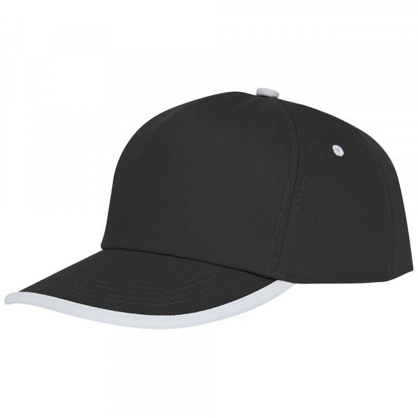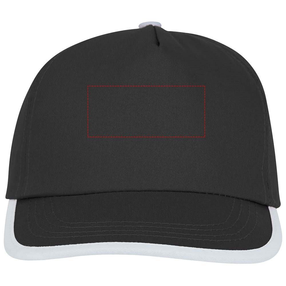 Piping details. Geborduurde oogjes voor ventilatie. Klittenband sluiting. Hoofdomtrek: 58 cm.