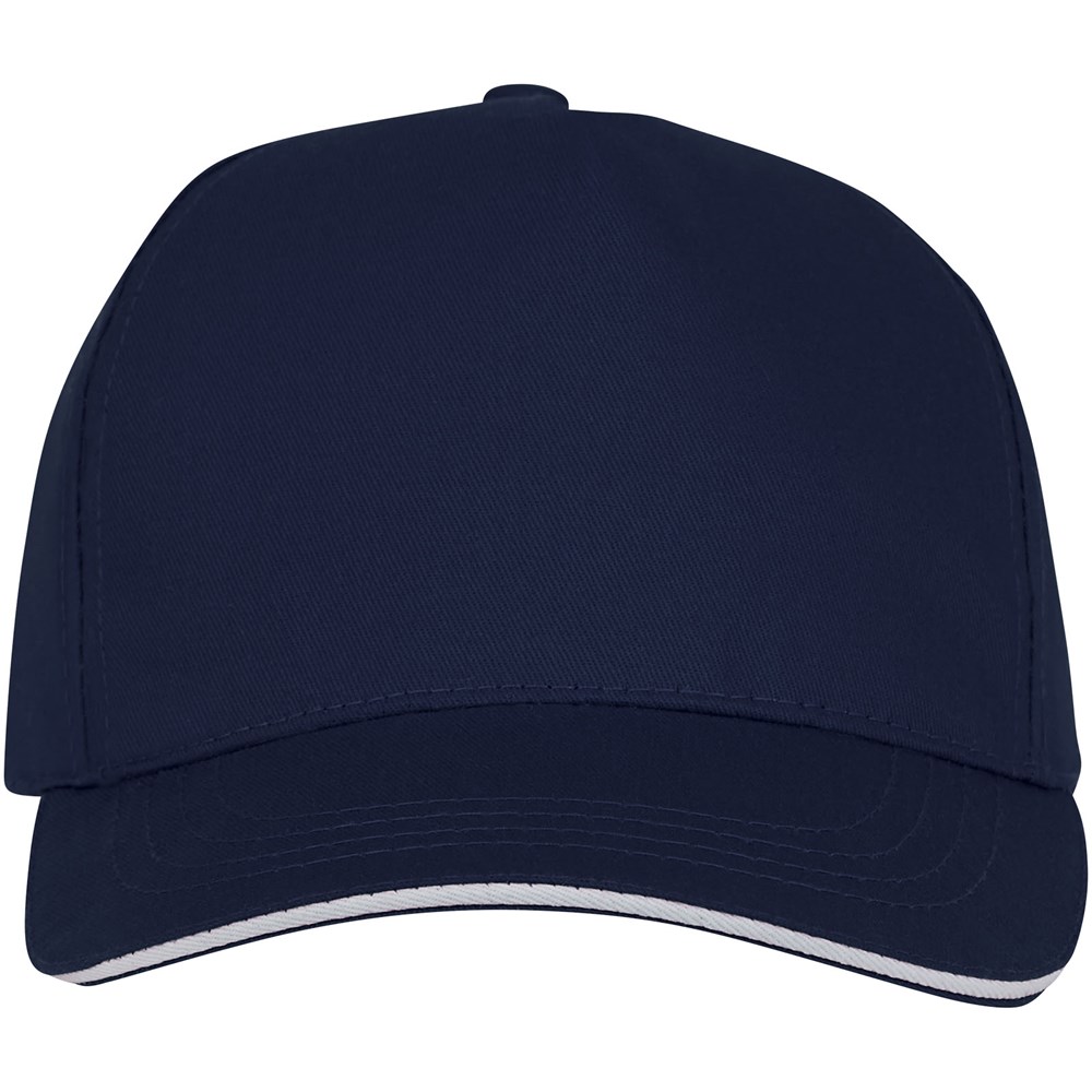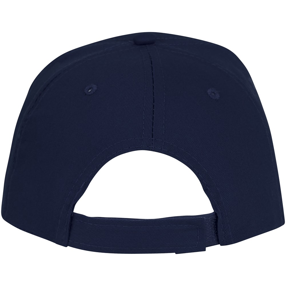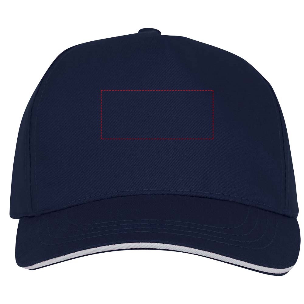 Voorgevormde klep met sandwich. Geborduurde oogjes voor ventilatie. Klittenband sluiting. Gestructureerde voorpanel. Katoenen details aan de binnenkant. Hoofdomtrek: 58 cm.