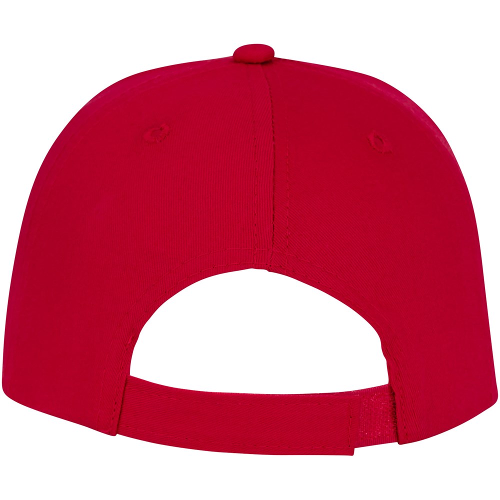 Geborduurde oogjes voor ventilatie. Klittenband sluiting. Gestructureerde voorpanels. Katoenen details aan de binnenkant. Hoofdomtrek: 58 cm.