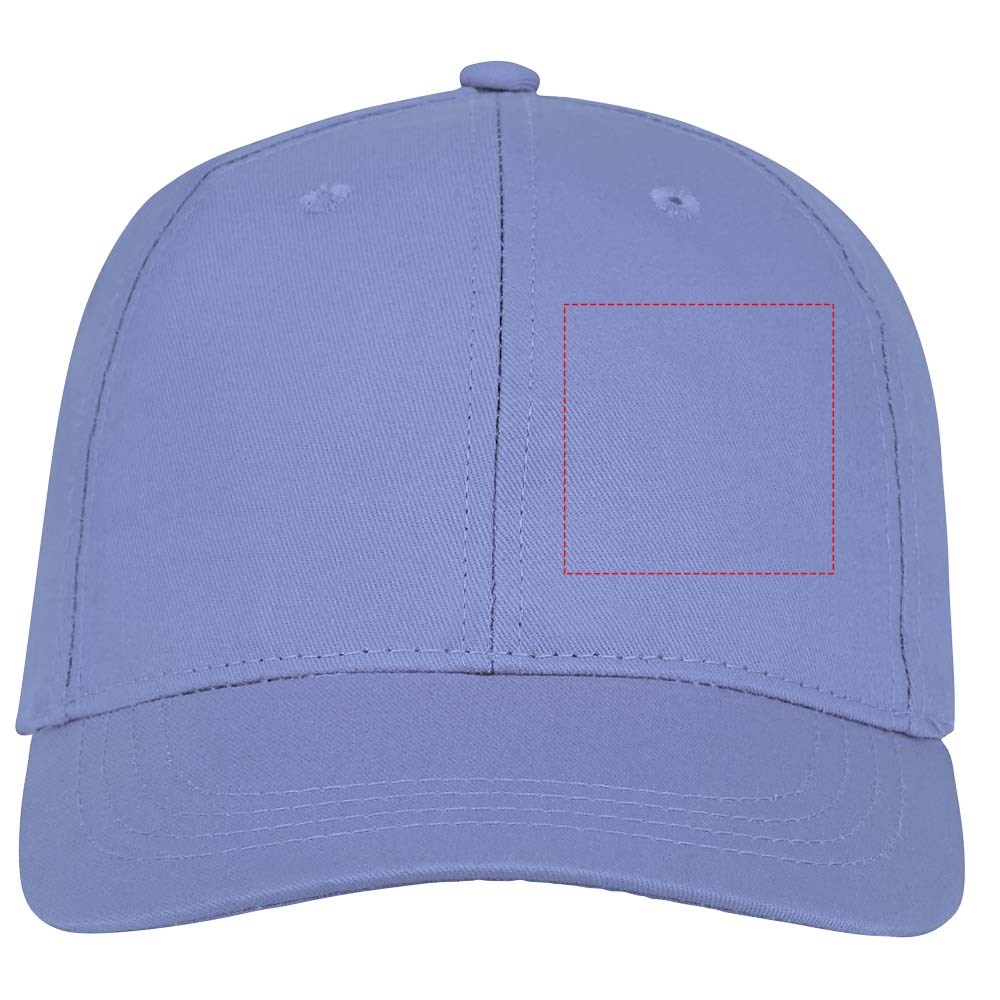 Geborduurde oogjes voor ventilatie. Klittenband sluiting. Gestructureerde voorpanels. Katoenen details aan de binnenkant. Hoofdomtrek: 58 cm.