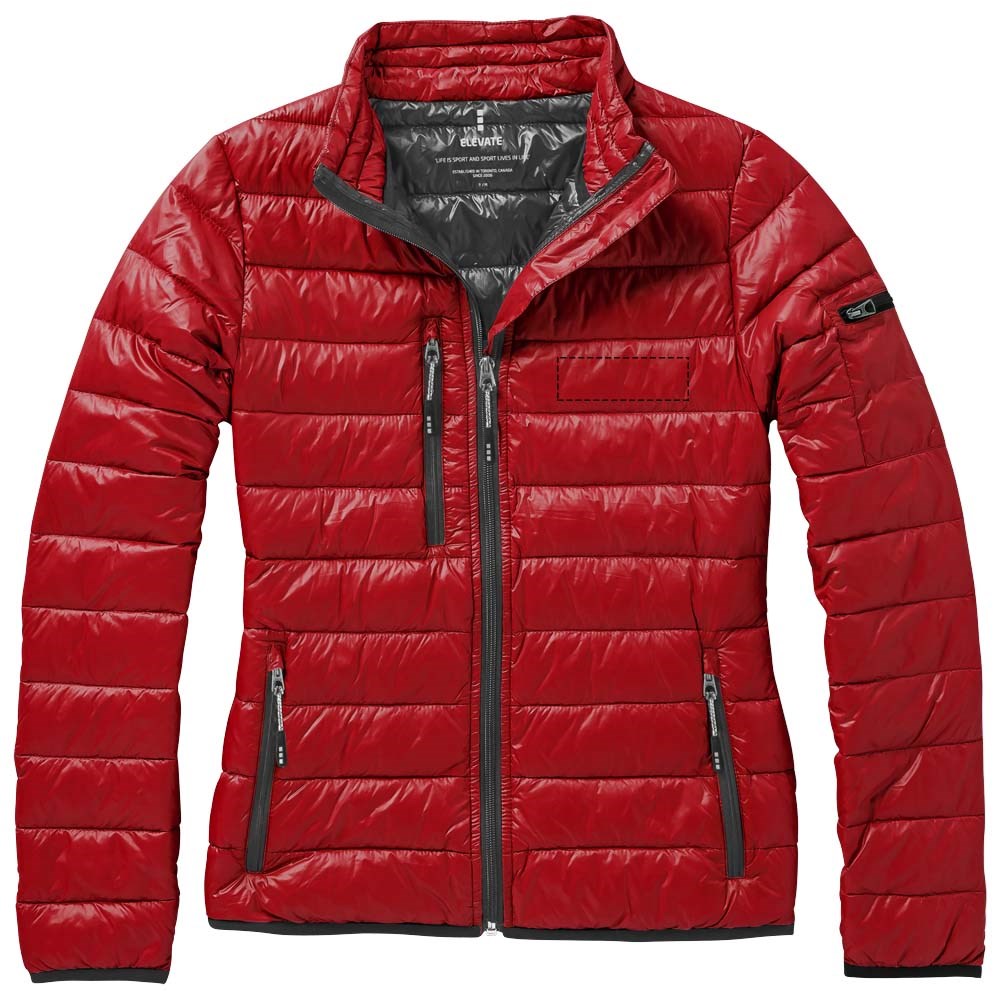 Downproof geperste stof. Stormflap aan binnenzijde met kinbescherming. Toelopende taille voor een meer flatterende pasvorm. Zak met rits op de mouw. Borstzak met ritssluiting. Steekzakken met rits. Elastische binding. Vrijliggende ritssluiting centraal vóór, met contrastband. 'easy grip' ritstrekker (met tweede set in antraciet). Ophanglus.