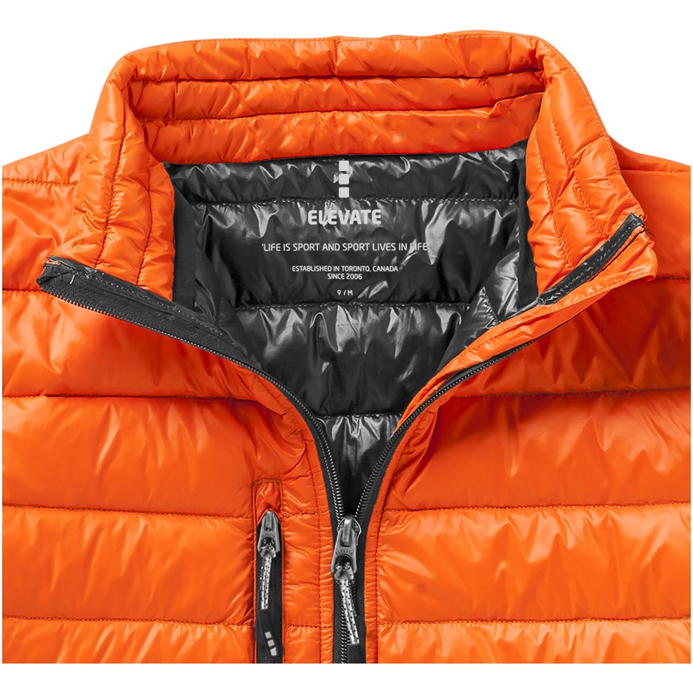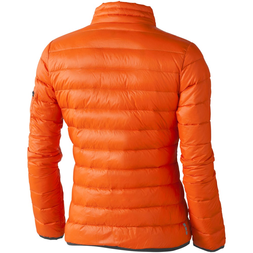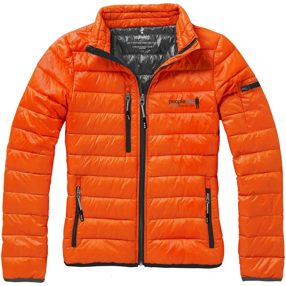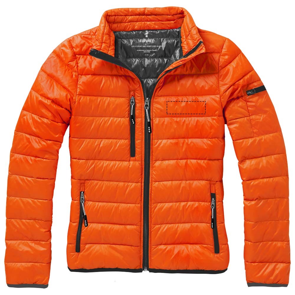 Downproof geperste stof. Stormflap aan binnenzijde met kinbescherming. Toelopende taille voor een meer flatterende pasvorm. Zak met rits op de mouw. Borstzak met ritssluiting. Steekzakken met rits. Elastische binding. Vrijliggende ritssluiting centraal vóór, met contrastband. 'easy grip' ritstrekker (met tweede set in antraciet). Ophanglus.