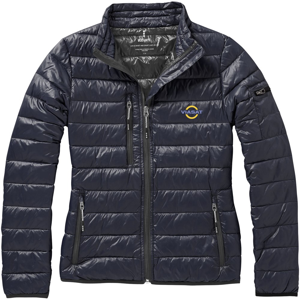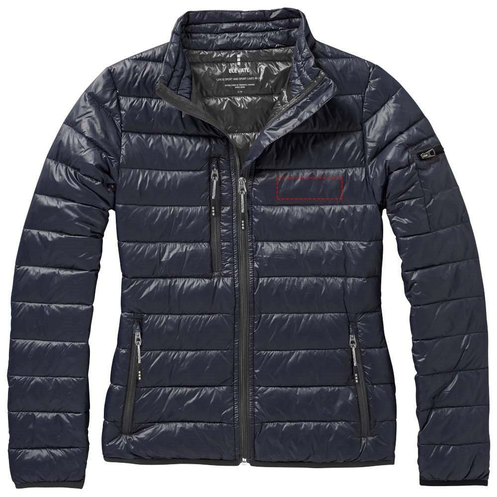 Downproof geperste stof. Stormflap aan binnenzijde met kinbescherming. Toelopende taille voor een meer flatterende pasvorm. Zak met rits op de mouw. Borstzak met ritssluiting. Steekzakken met rits. Elastische binding. Vrijliggende ritssluiting centraal vóór, met contrastband. 'easy grip' ritstrekker (met tweede set in antraciet). Ophanglus.