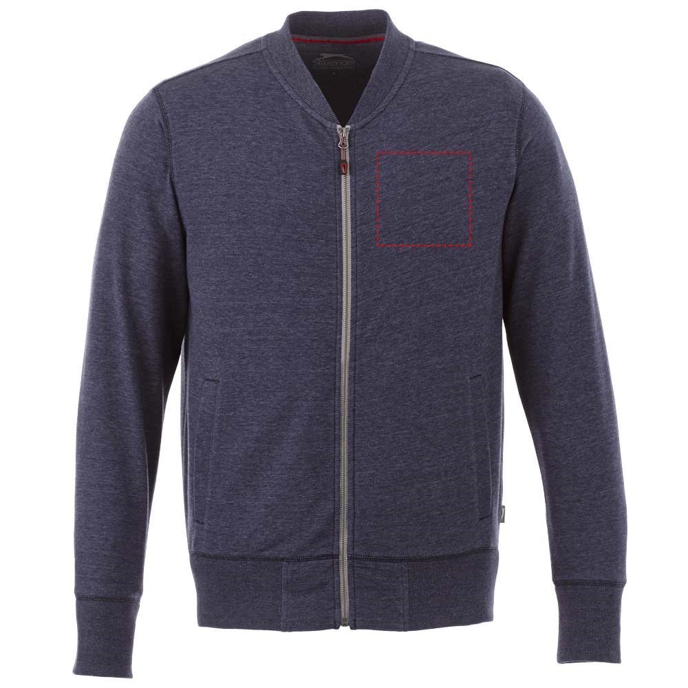 Interne media zak. Metalen rits midden voorsluiting. 'Easy grip' ritstrekker. Voorzakken. Vlakgebreide kraag. Plat gebreide rib mouw. Ribgebreide onderzijde. Twee kleuren nektape. Label in zijnaad. Transfer maatlabel voor extra comfort.