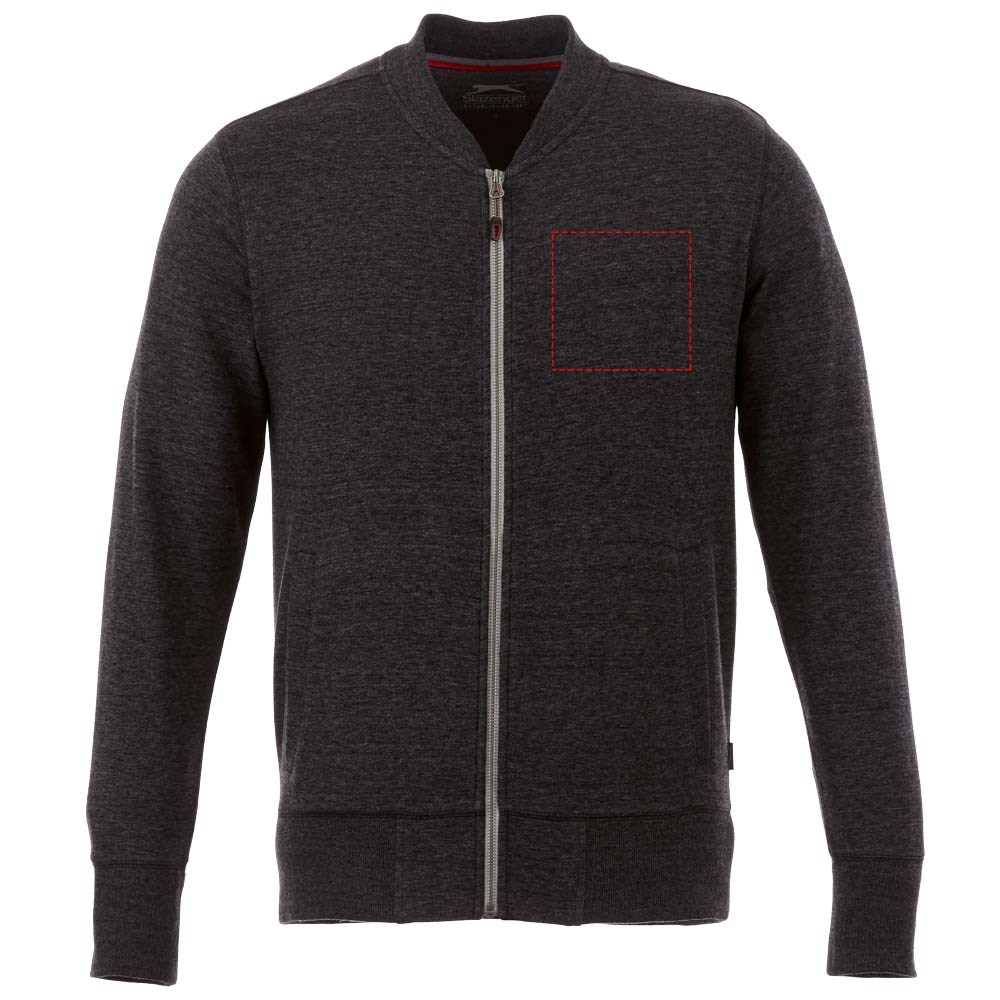 Interne media zak. Metalen rits midden voorsluiting. 'Easy grip' ritstrekker. Voorzakken. Vlakgebreide kraag. Plat gebreide rib mouw. Ribgebreide onderzijde. Twee kleuren nektape. Label in zijnaad. Transfer maatlabel voor extra comfort.