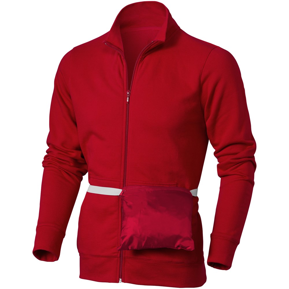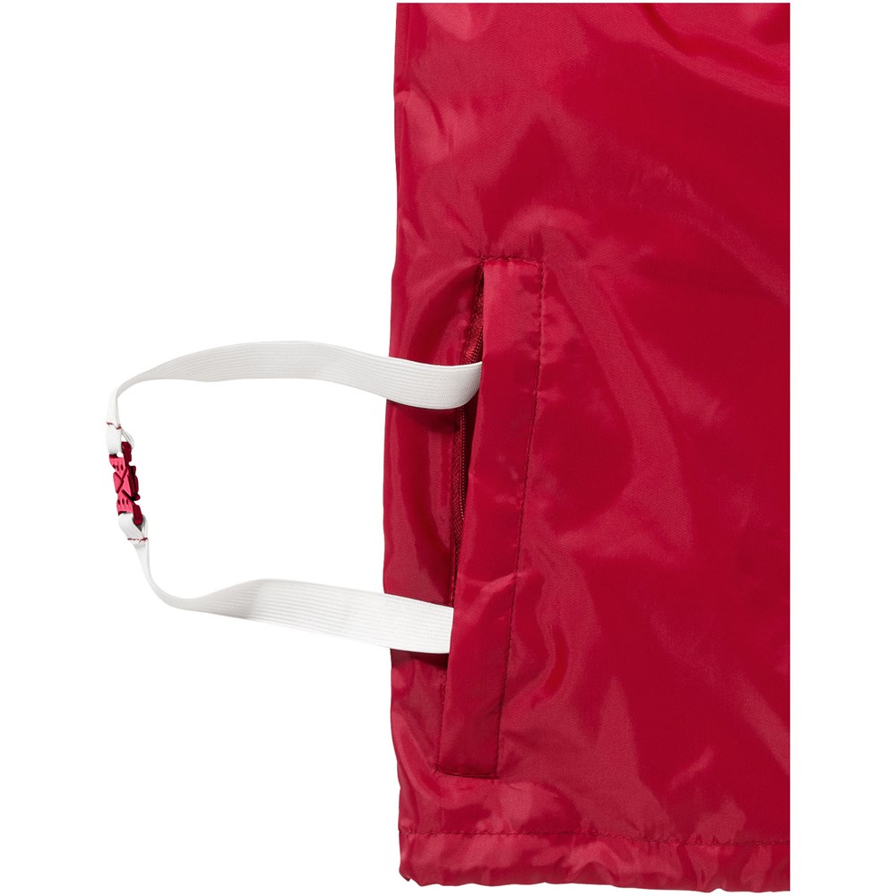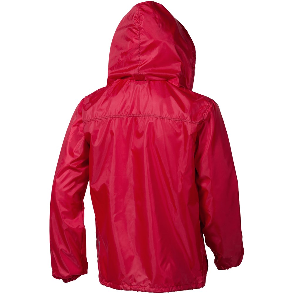 In de zak linksonder op te bergen. Rolcapuchon . Koord aan de onderzijde met koordstoppers. Zak met elastiekenband. Elastische manchetten. Transfer maatlabel voor extra comfort.