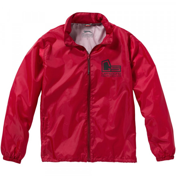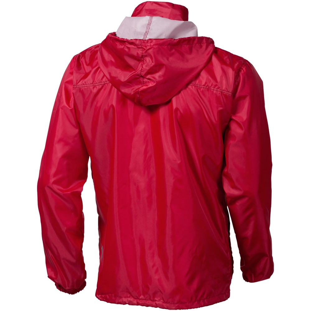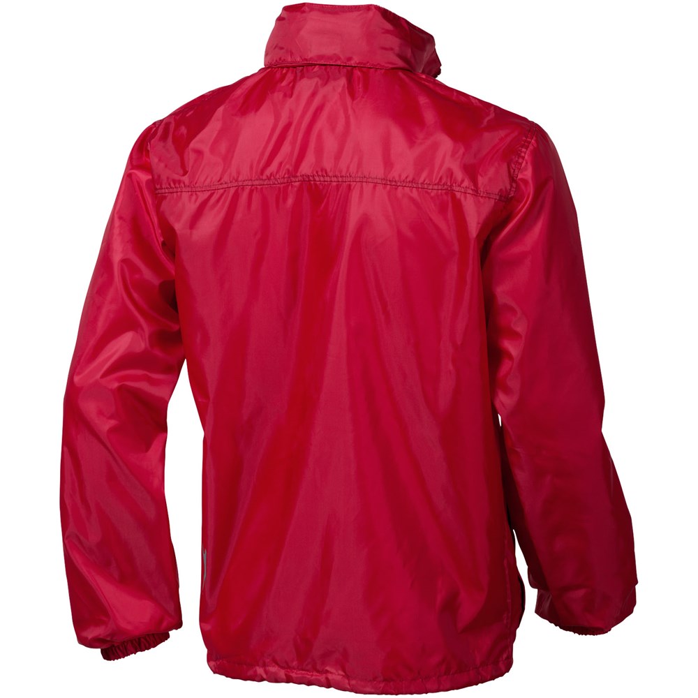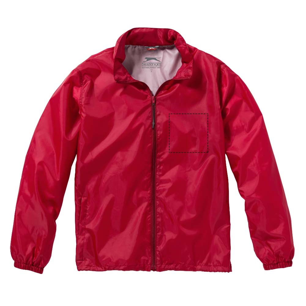 In de zak linksonder op te bergen. Rolcapuchon . Koord aan de onderzijde met koordstoppers. Zak met elastiekenband. Elastische manchetten. Transfer maatlabel voor extra comfort.