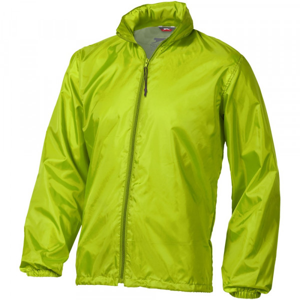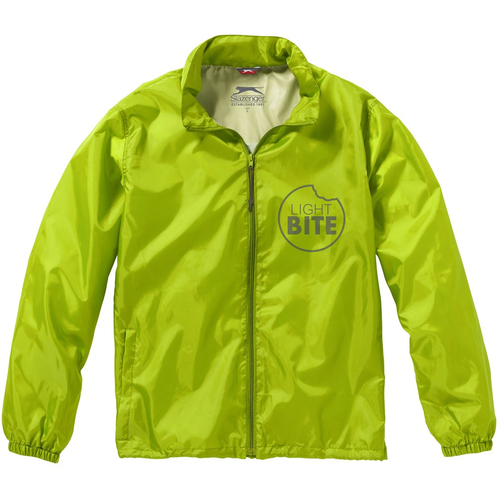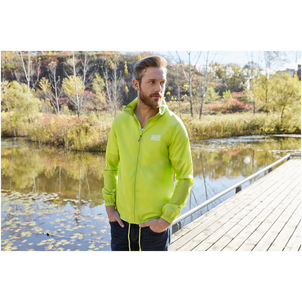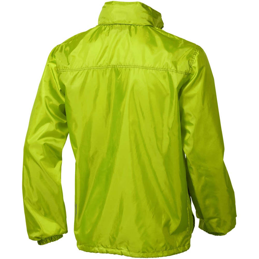 In de zak linksonder op te bergen. Rolcapuchon . Koord aan de onderzijde met koordstoppers. Zak met elastiekenband. Elastische manchetten. Transfer maatlabel voor extra comfort.