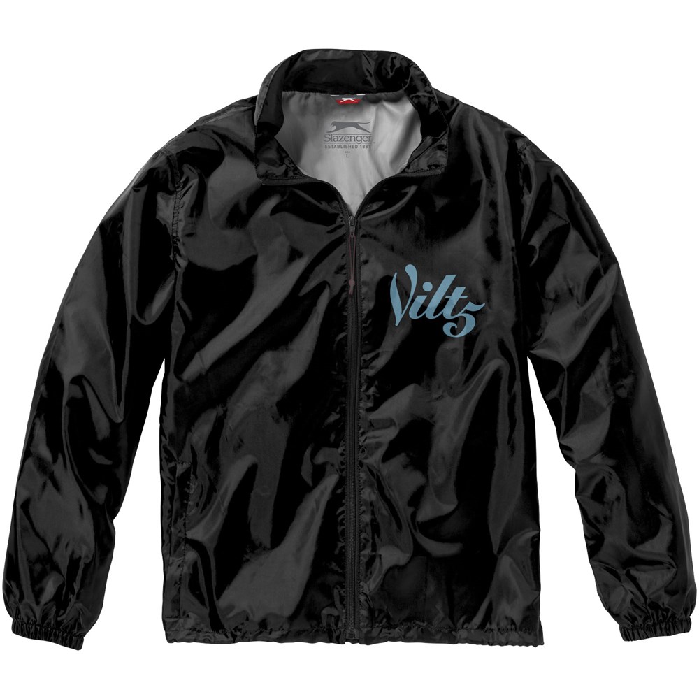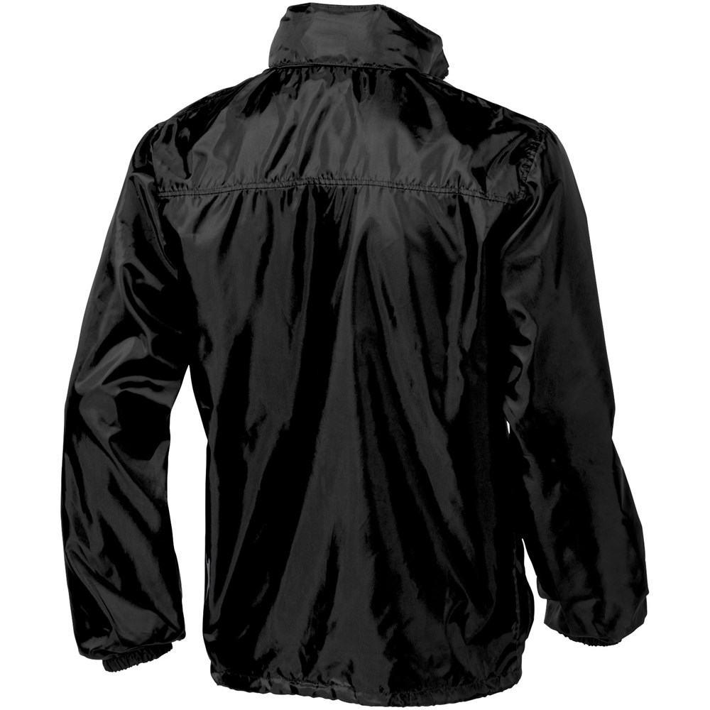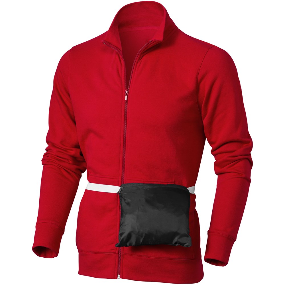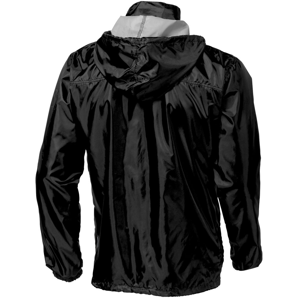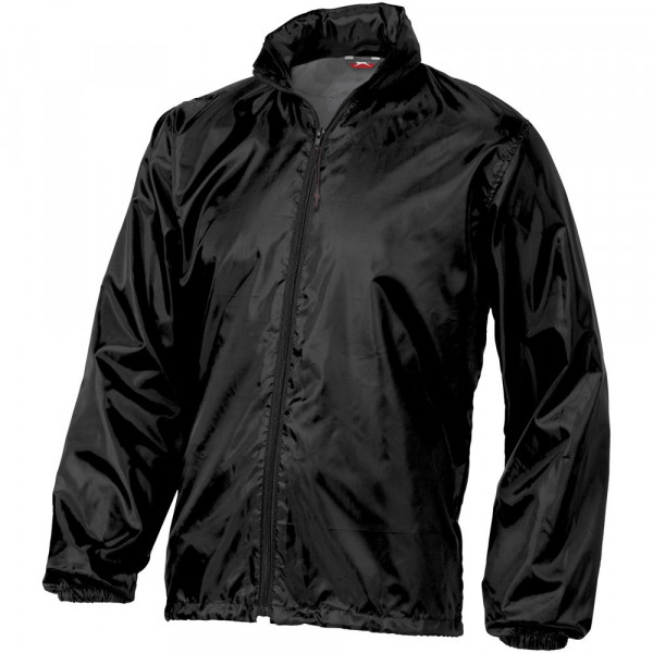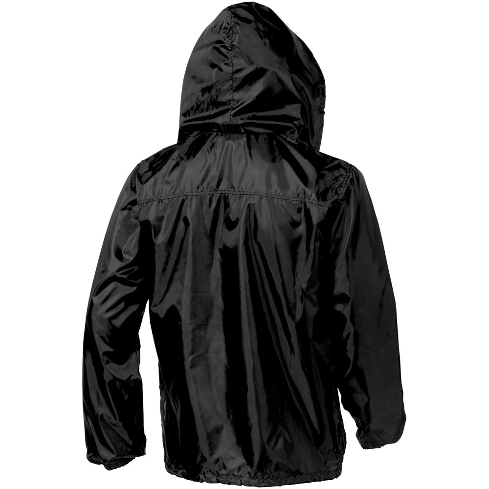 In de zak linksonder op te bergen. Rolcapuchon . Koord aan de onderzijde met koordstoppers. Zak met elastiekenband. Elastische manchetten. Transfer maatlabel voor extra comfort.
