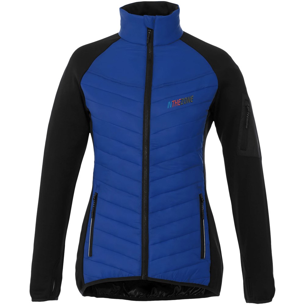 Stormflap aan binnenzijde met kinbescherming. Mediadoorgang met snoergeleider aan binnenzijde. Achterkant langer dan voorkant. Gevormde naden en flatteus getailleerde pasvorm. Elastische binding in contrasterende kleur. Piping details. Vrijliggende ritssluiting centraal vóór, met contrastband. 'Easy grip' ritstrekker. Ophanglus. Transfer maatlabel voor extra comfort.
