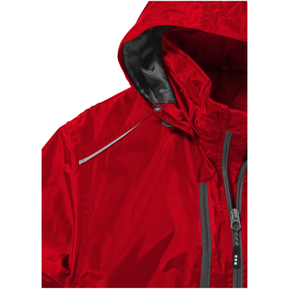 1000 mm Waterafstotend. Elastiek koord in capuchon en onderzijde met verstelbare stoppers. Verstelbare manchetten met klittenband. Afneembare capuchon. Binnenzak. Gevormde naden en flatteus getailleerde pasvorm. Borstzak met ritssluiting. Steekzakken met rits. Reflecterende details. Vrijliggende ritssluiting centraal vóór, met contrastband.