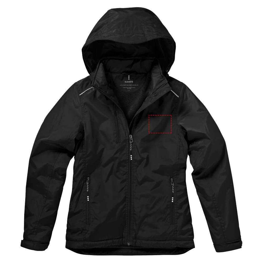 1000 mm Waterafstotend. Elastiek koord in capuchon en onderzijde met verstelbare stoppers. Verstelbare manchetten met klittenband. Afneembare capuchon. Binnenzak. Gevormde naden en flatteus getailleerde pasvorm. Borstzak met ritssluiting. Steekzakken met rits. Reflecterende details. Vrijliggende ritssluiting centraal vóór, met contrastband.