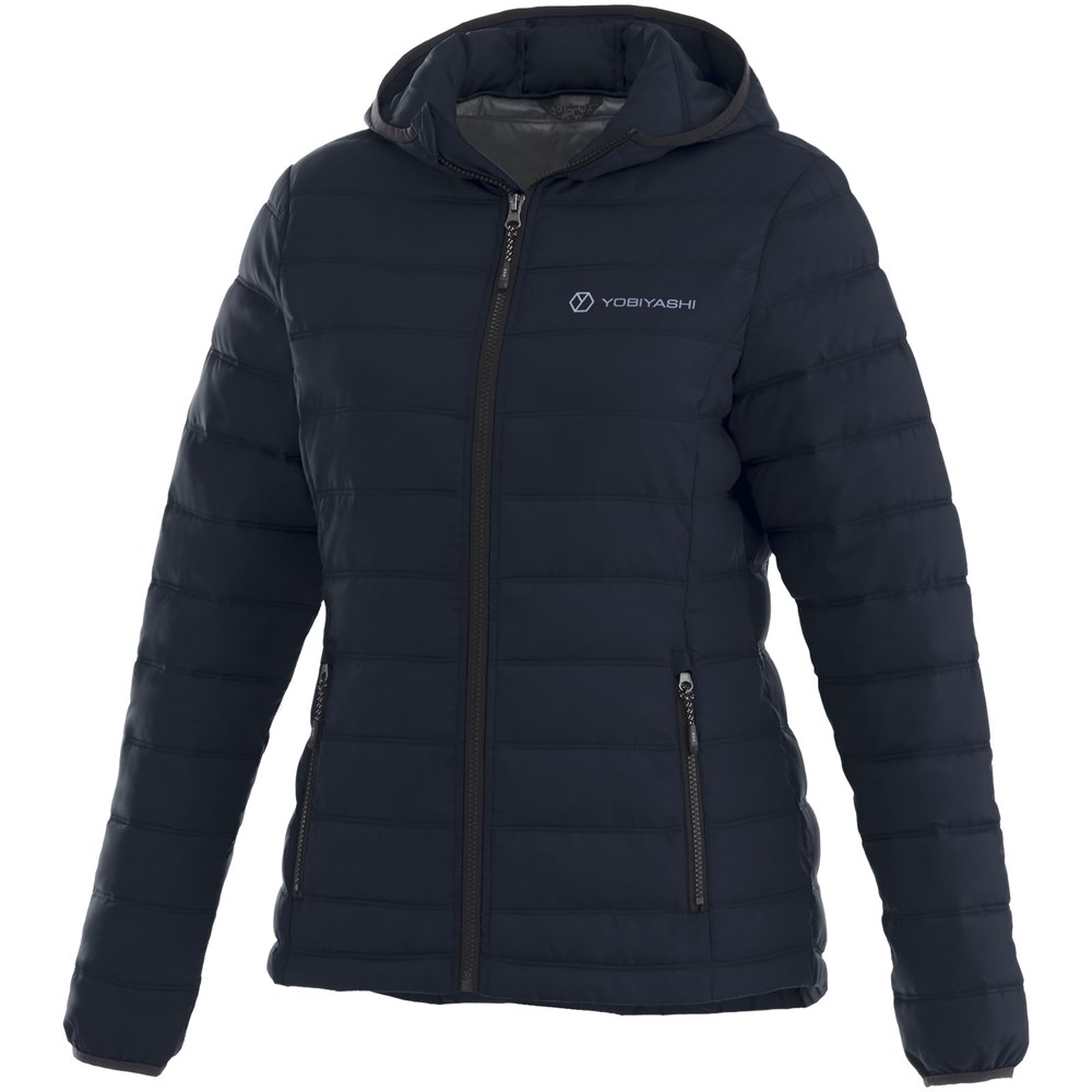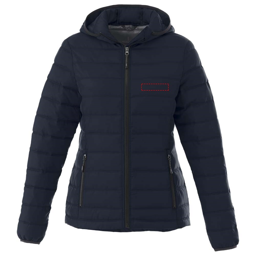 600 mm water afstotend. Stormflap aan binnenzijde met kinbescherming. Vrijliggende ritssluiting centraal vóór, met contrastband. Steekzakken met rits. Gevormde naden en flatteus getailleerde pasvorm. Elastische binding. 'Easy grip' ritstrekker. Ophanglus in contrastkleur. Transfer maatlabel voor extra comfort.