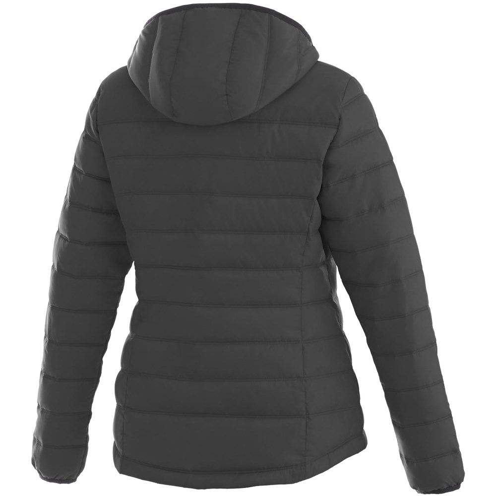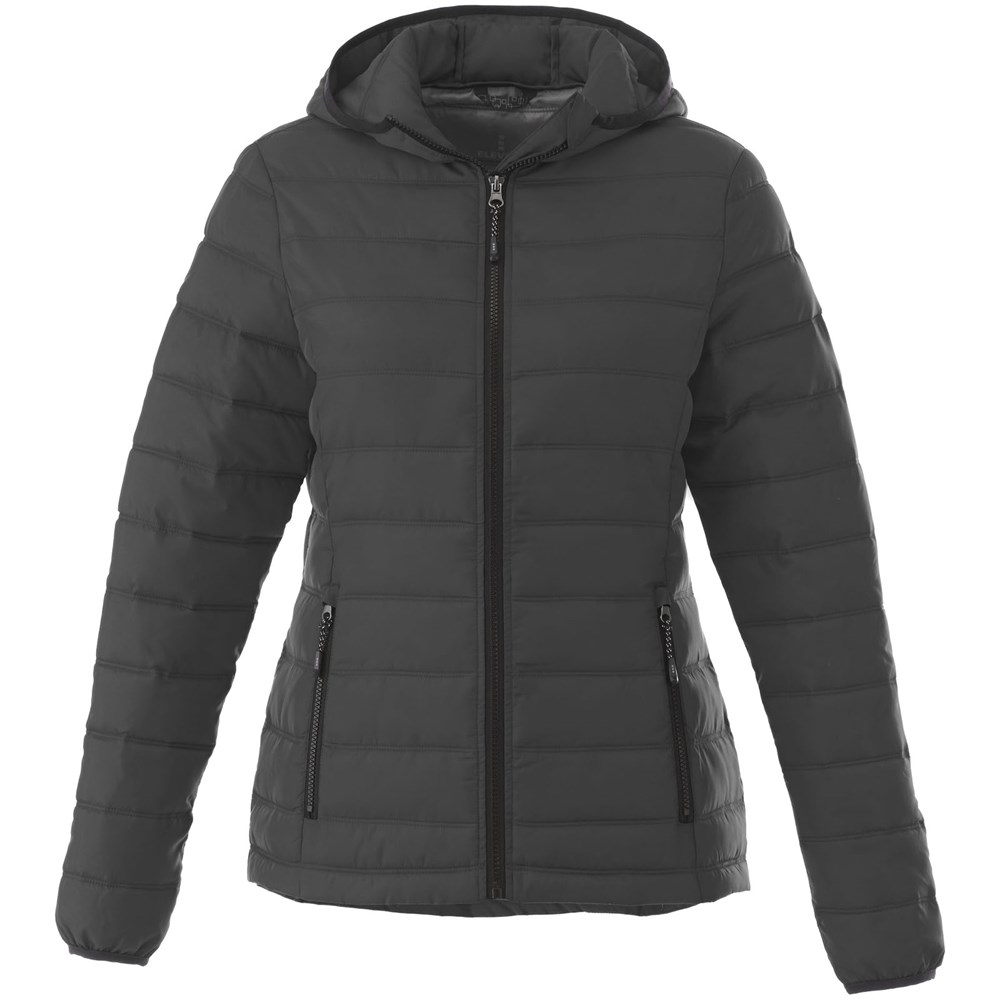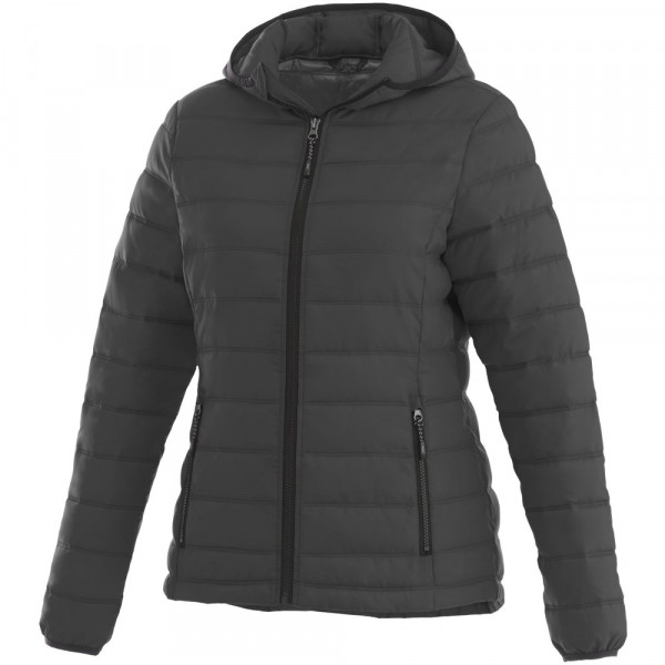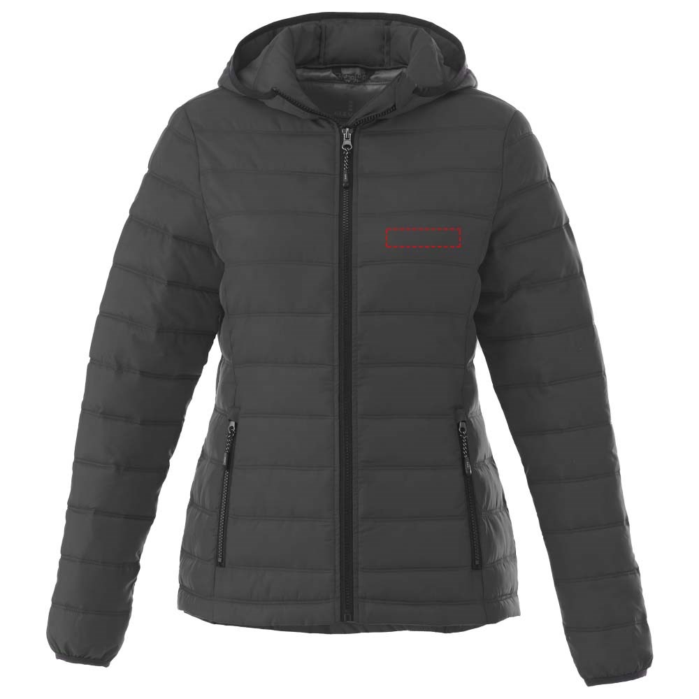 600 mm water afstotend. Stormflap aan binnenzijde met kinbescherming. Vrijliggende ritssluiting centraal vóór, met contrastband. Steekzakken met rits. Gevormde naden en flatteus getailleerde pasvorm. Elastische binding. 'Easy grip' ritstrekker. Ophanglus in contrastkleur. Transfer maatlabel voor extra comfort.