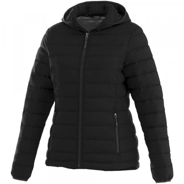 600 mm water afstotend. Stormflap aan binnenzijde met kinbescherming. Vrijliggende ritssluiting centraal vóór, met contrastband. Steekzakken met rits. Gevormde naden en flatteus getailleerde pasvorm. Elastische binding. 'Easy grip' ritstrekker. Ophanglus in contrastkleur. Transfer maatlabel voor extra comfort.