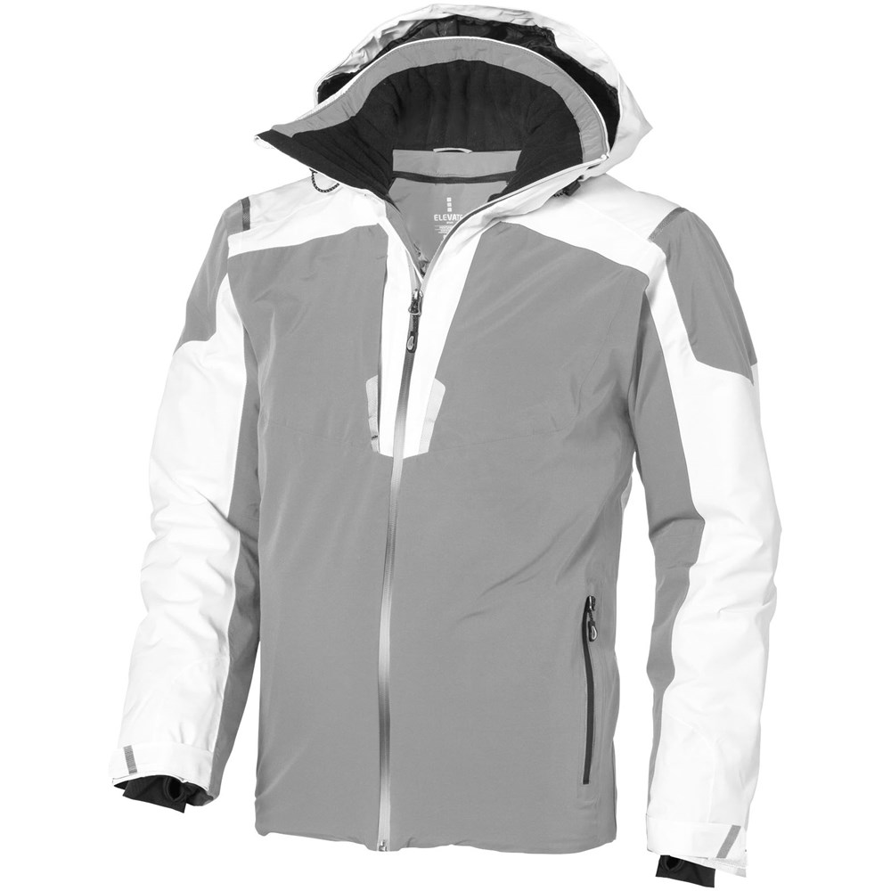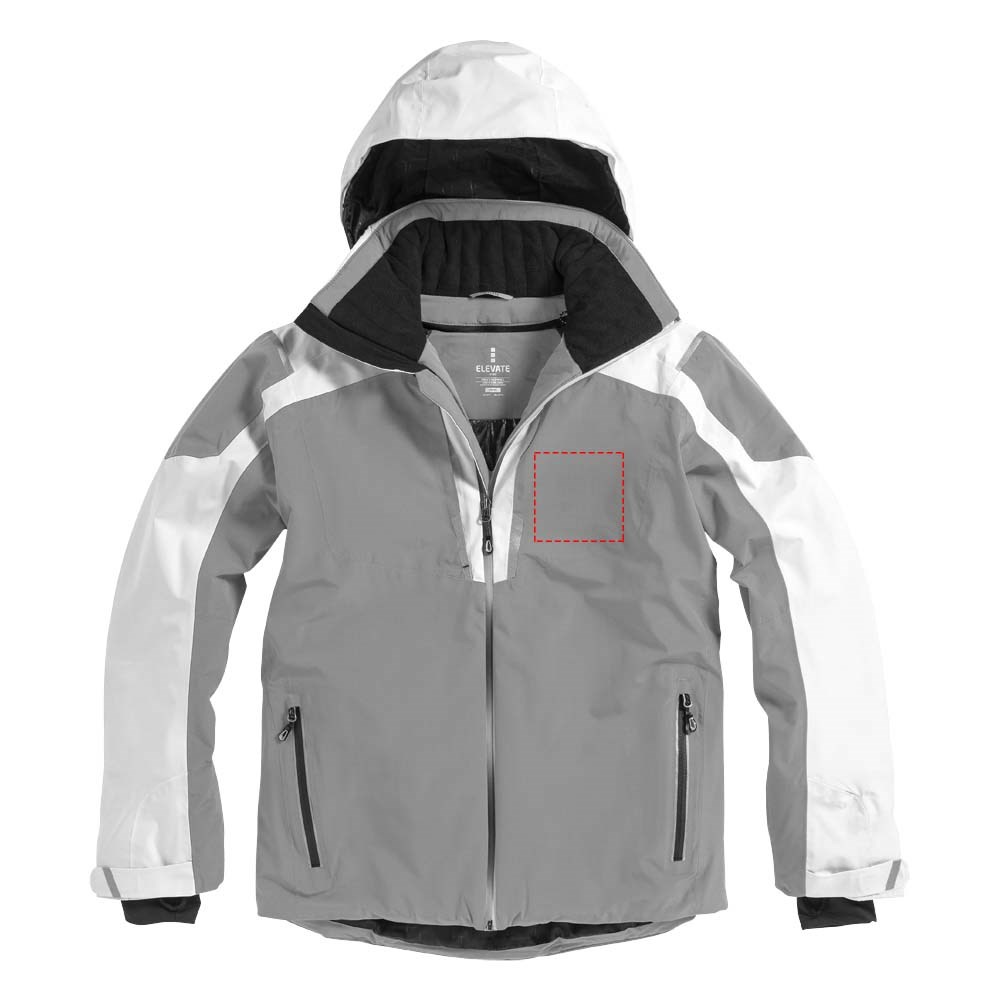 8000 mm waterdicht en 500 g/m² ademend. Getapete naden. Waterdichte omgekeerde rits. Echoheat™ body-voering. Mediadoorgang met snoergeleider aan binnenzijde. Stretch gebreide manchetten met duimsgaten. Binnenzak met rits. Stormflap aan binnenzijde met kinbescherming. Afneembare capuchon. Achterkant langer dan voorkant.