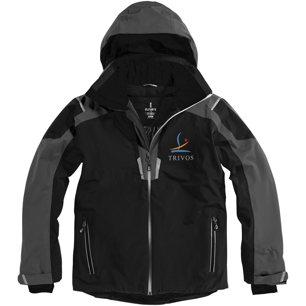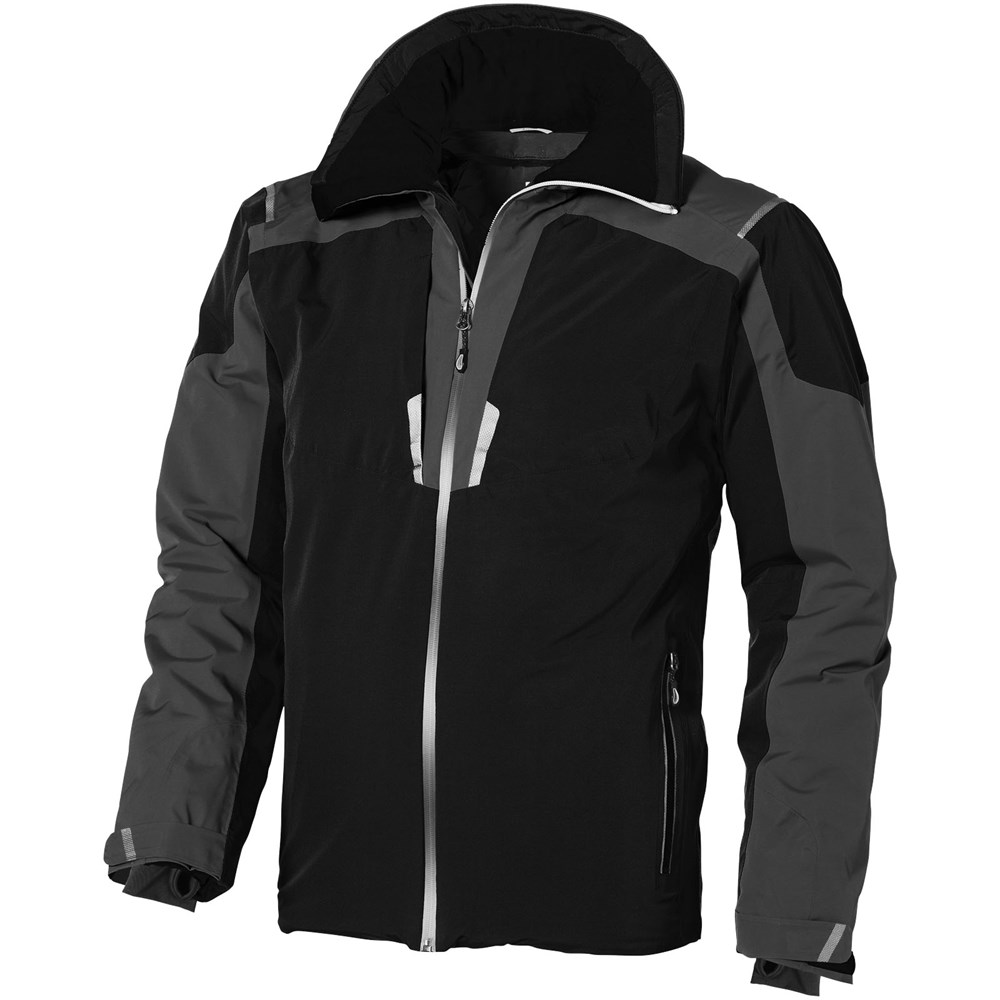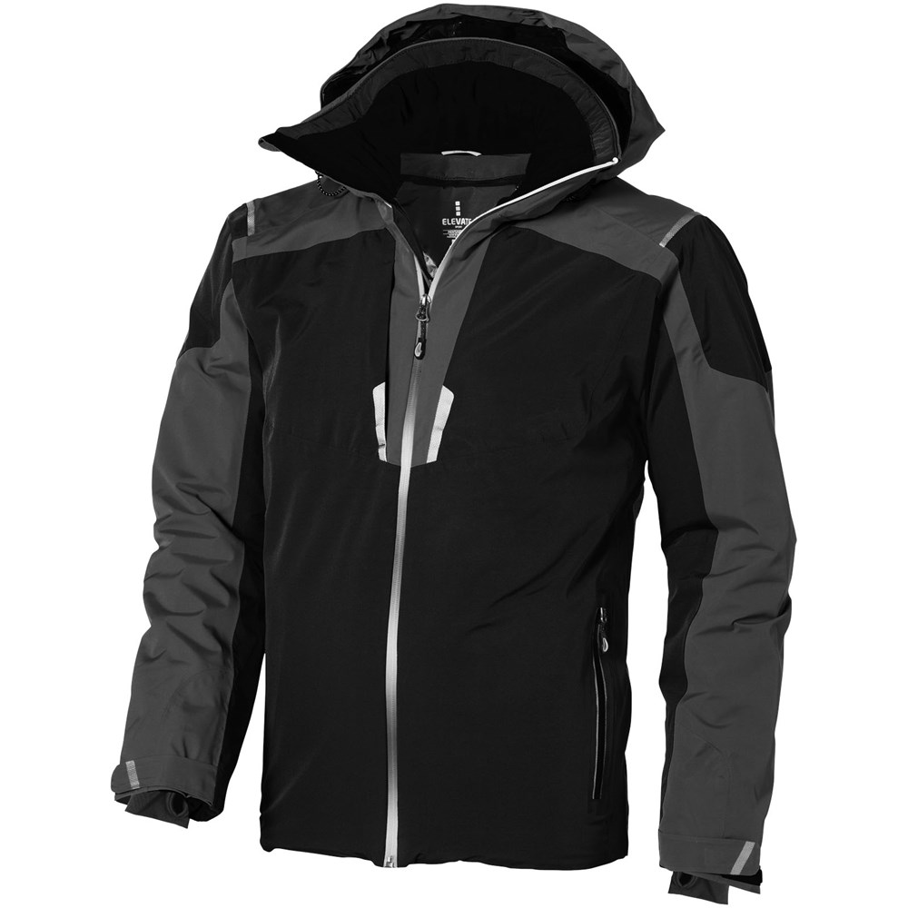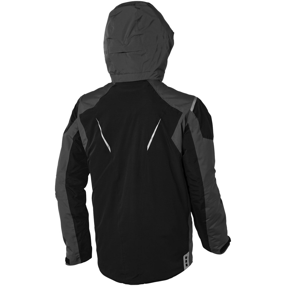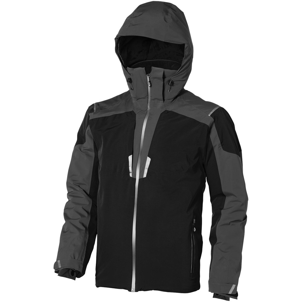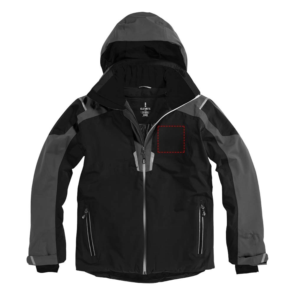 8000 mm waterdicht en 500 g/m² ademend. Getapete naden. Waterdichte omgekeerde rits. Echoheat™ body-voering. Mediadoorgang met snoergeleider aan binnenzijde. Stretch gebreide manchetten met duimsgaten. Binnenzak met rits. Stormflap aan binnenzijde met kinbescherming. Afneembare capuchon. Achterkant langer dan voorkant.