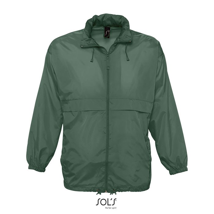 SOL'S SURF Windbreaker unisex 210g/m². Zonder twijfel de meest competitieve op de markt. Onderscheidt zich van de concurrentie met zijn twee buitenzakken met rits. Een kap verstopt achter ritssluiting in de kraag en ventilatiegaatjes. 100% nylon 210 T. Waterdicht. Ritssluiting. Kap met rijgkoord opgeplooid in de kraag. 2 Buitenzakken met rits. Opvouwbaar in zakje dat met een elastiek aan de taill