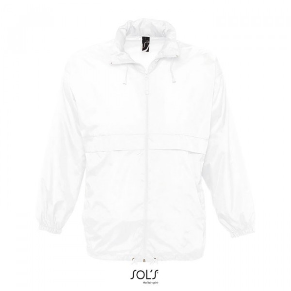 SOL'S SURF Windbreaker unisex 210g/m². Zonder twijfel de meest competitieve op de markt. Onderscheidt zich van de concurrentie met zijn twee buitenzakken met rits. Een kap verstopt achter ritssluiting in de kraag en ventilatiegaatjes. 100% nylon 210 T. Waterdicht. Ritssluiting. Kap met rijgkoord opgeplooid in de kraag. 2 Buitenzakken met rits. Opvouwbaar in zakje dat met een elastiek aan de taill