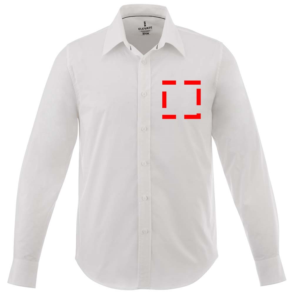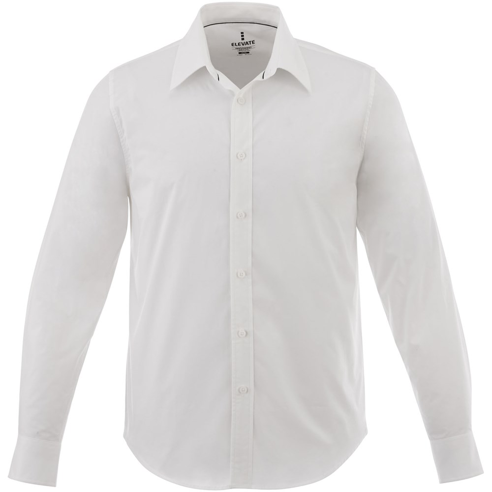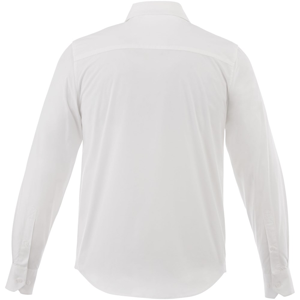 Verborgen button-down kraag . Stretch stof. Verstelbare éénknoops, éénploois manchet. Satijnen bies aan de binnenkant van de nek. Gegraveerde knopen. Transfer maatlabel voor extra comfort.