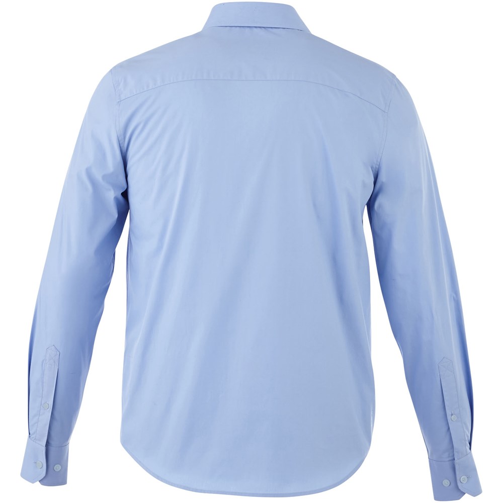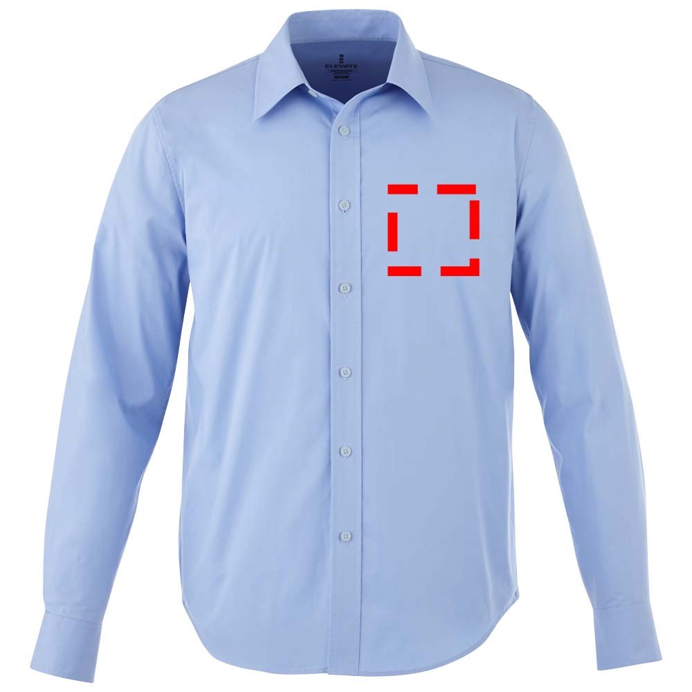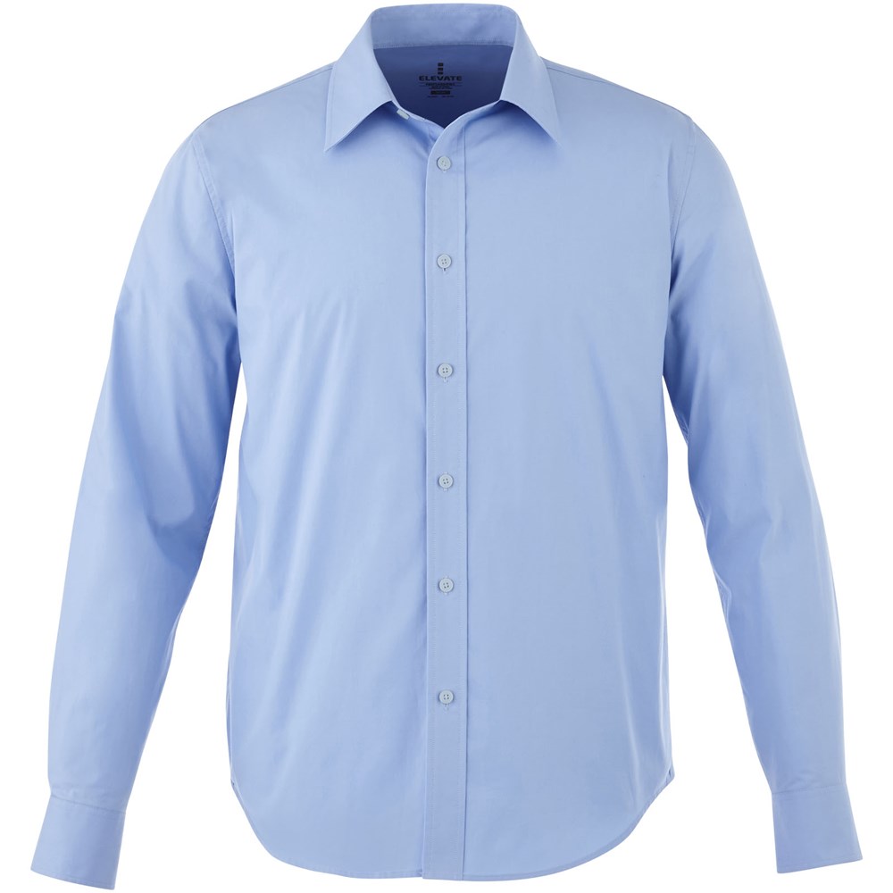 Verborgen button-down kraag . Stretch stof. Verstelbare éénknoops, éénploois manchet. Satijnen bies aan de binnenkant van de nek. Gegraveerde knopen. Transfer maatlabel voor extra comfort.