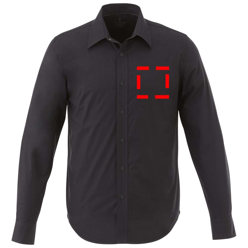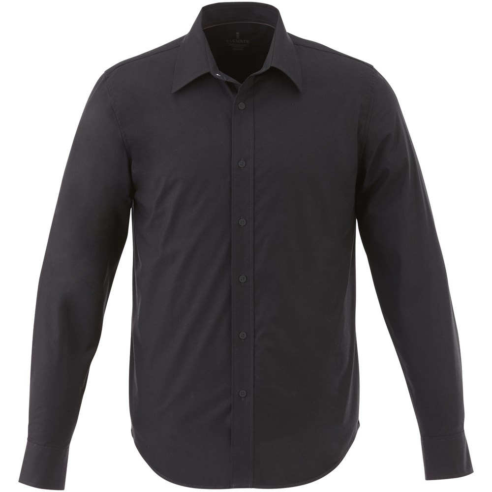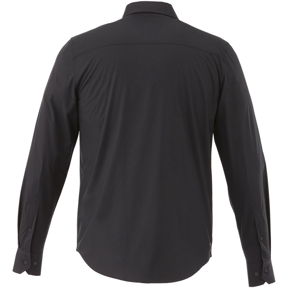 Verborgen button-down kraag . Stretch stof. Verstelbare éénknoops, éénploois manchet. Satijnen bies aan de binnenkant van de nek. Gegraveerde knopen. Transfer maatlabel voor extra comfort.