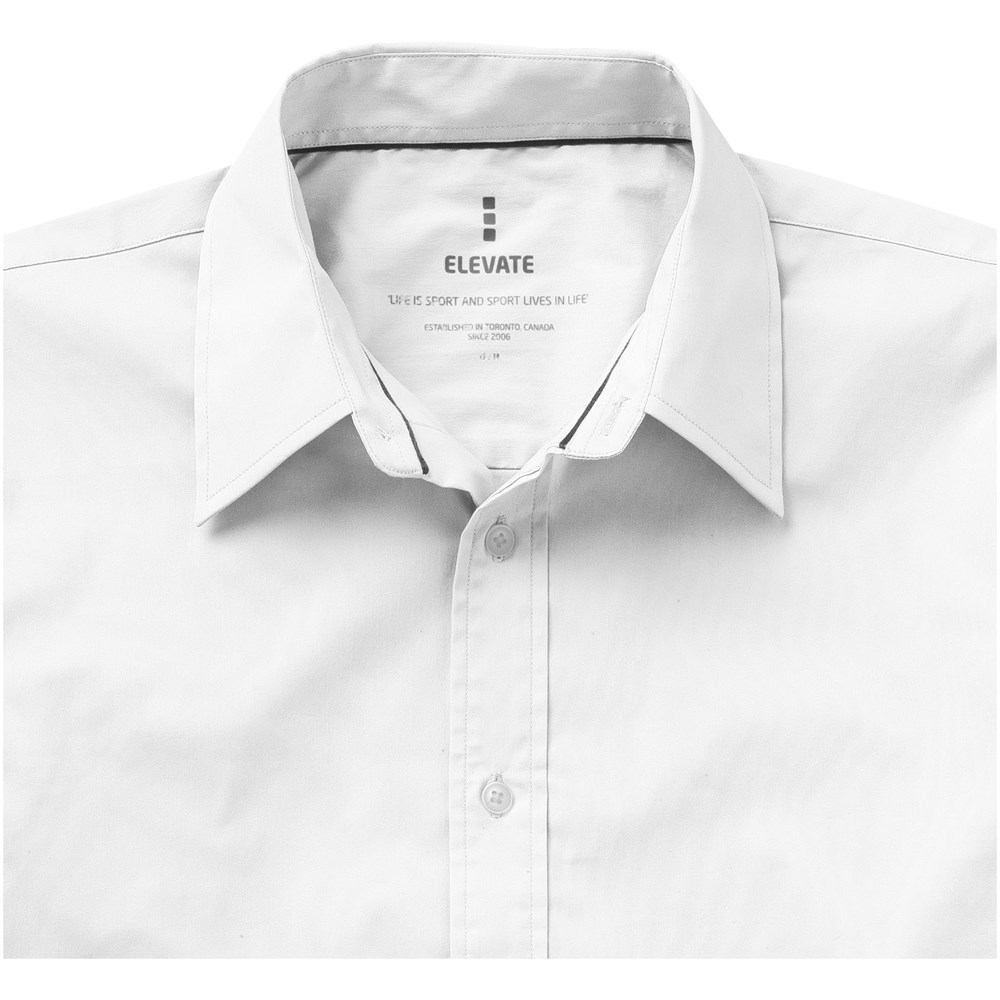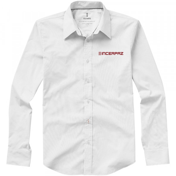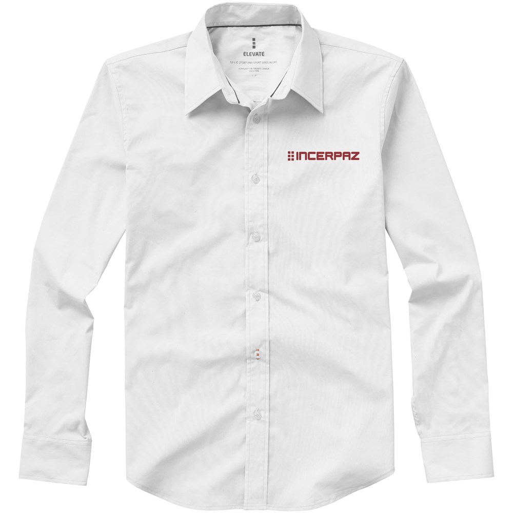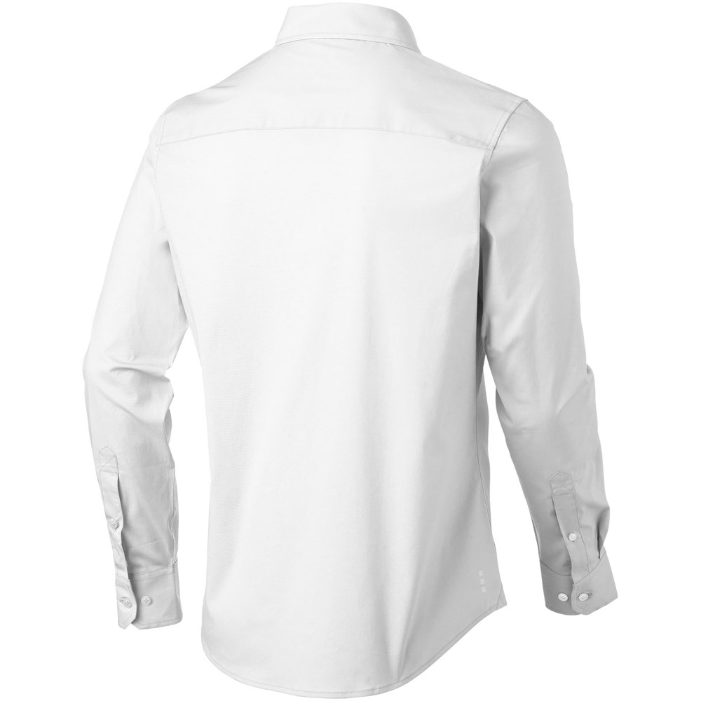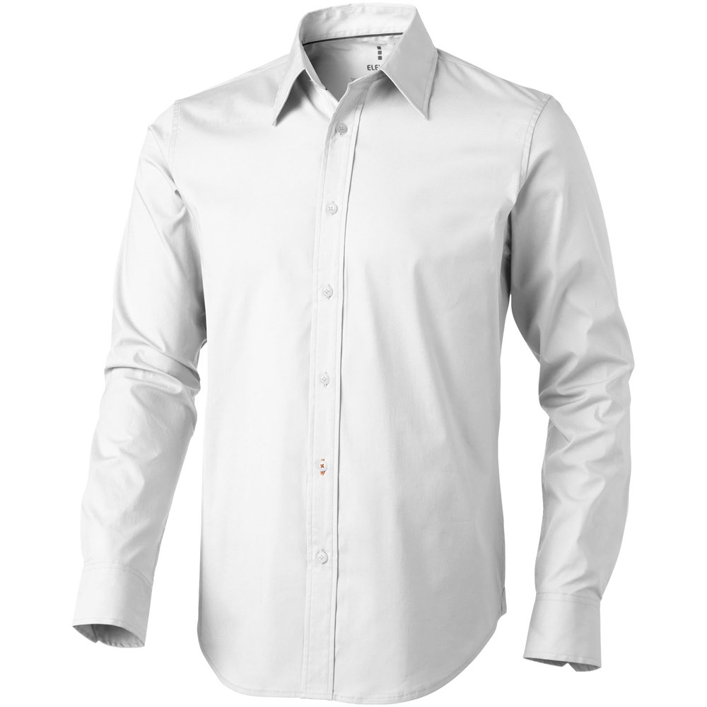 Verstelbare éénknoops, éénploois manchet. Tweede knoopsgat van onder met oranje stiksels.. Satijnen bies aan de binnenkant van de nek. Gegraveerde parel knopen. Transfer maatlabel voor extra comfort.