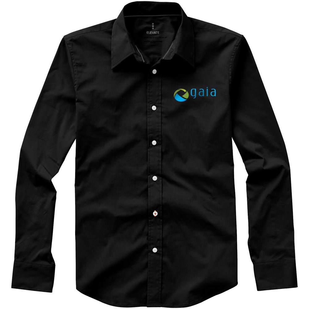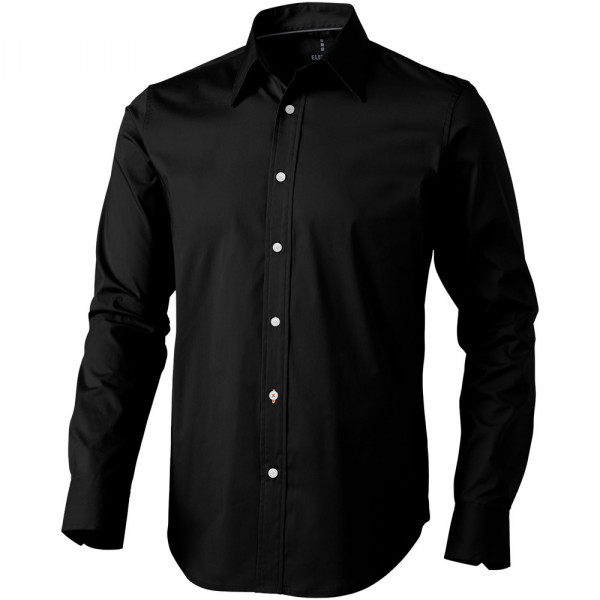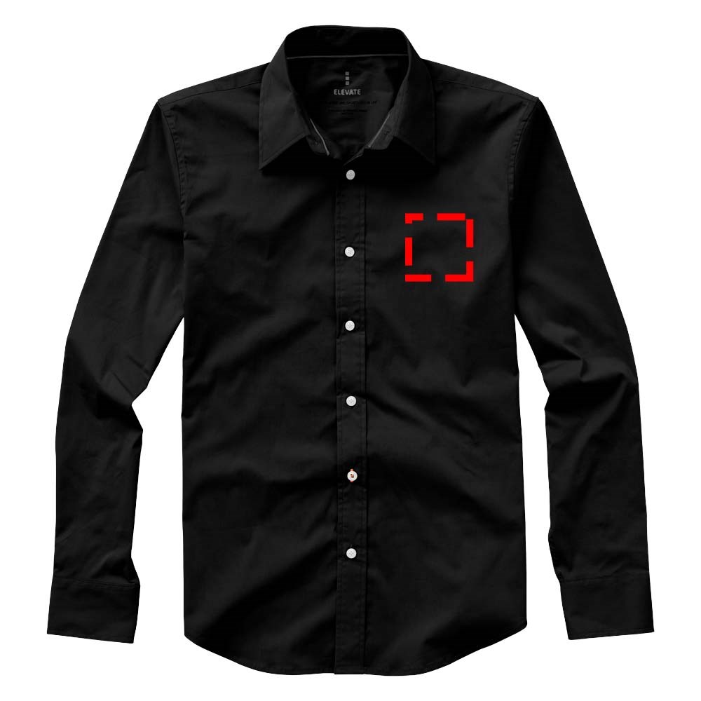 Verstelbare éénknoops, éénploois manchet. Tweede knoopsgat van onder met oranje stiksels.. Satijnen bies aan de binnenkant van de nek. Gegraveerde parel knopen. Transfer maatlabel voor extra comfort.