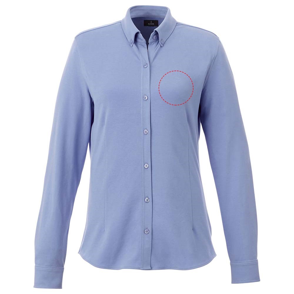 Boord in dezelfde stof. Stretch stof. Verstelbare éénknoops, éénploois manchet. Button-down kraag. Gevormde naden en flatteus getailleerde pasvorm. Satijnen bies aan de binnenkant van de nek. Gegraveerde knopen. Geweven label.