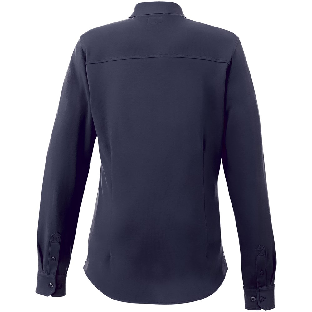 Boord in dezelfde stof. Stretch stof. Verstelbare éénknoops, éénploois manchet. Button-down kraag. Gevormde naden en flatteus getailleerde pasvorm. Satijnen bies aan de binnenkant van de nek. Gegraveerde knopen. Geweven label.