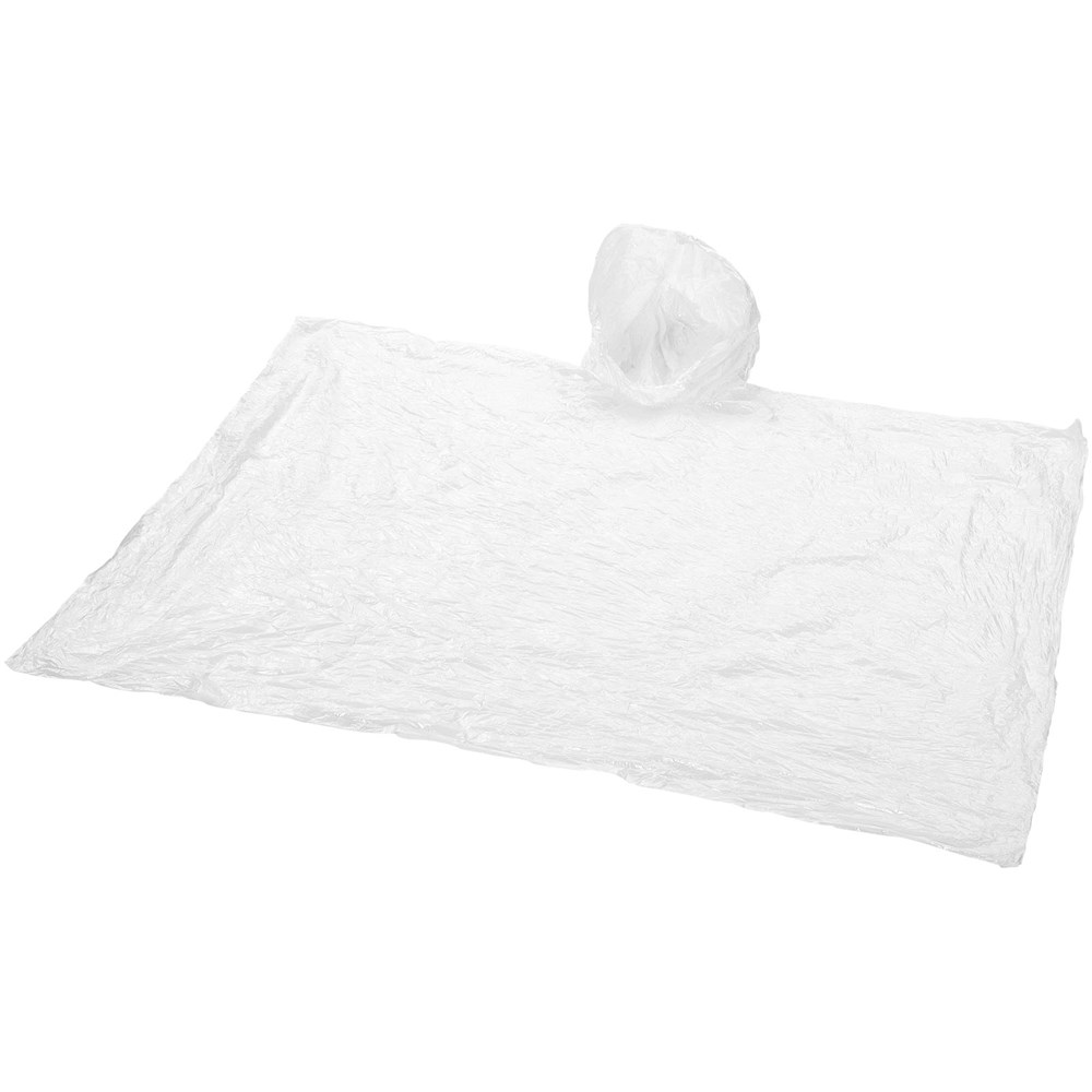 Poncho met capuchon voor de onverwachte stortbui: One-size-fits-all. Verpakt in een handig compact tasje dat in elke zak of tas past en zelfs aan een sleutelring te haken is. Bedrukking is alleen mogelijk op het tasje.