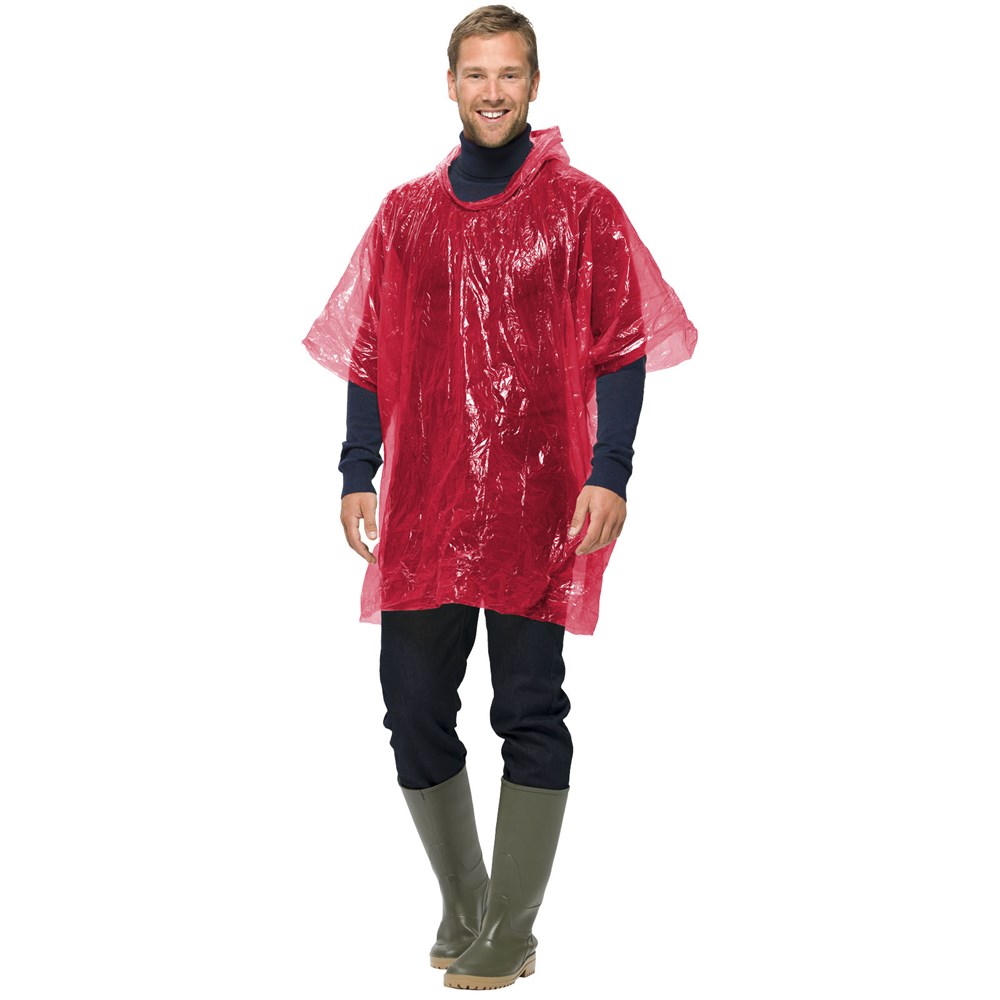 Poncho met capuchon voor de onverwachte stortbui: One-size-fits-all. Verpakt in een handig compact tasje dat in elke zak of tas past en zelfs aan een sleutelring te haken is. Bedrukking is alleen mogelijk op het tasje.