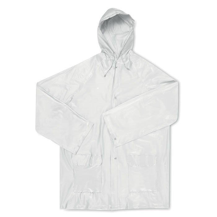EVA regenjas met capuchon en zakken in een hoesje. mehr