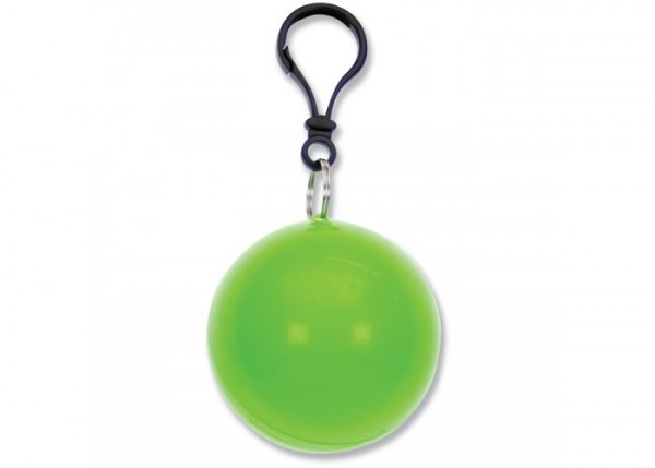 Regenponcho verpakt in bal. Altijd handig voor onderweg als het plotseling gaat regenen. Met sleutelhanger voor bevestiging aan bijvoorbeeld fiets of broek.