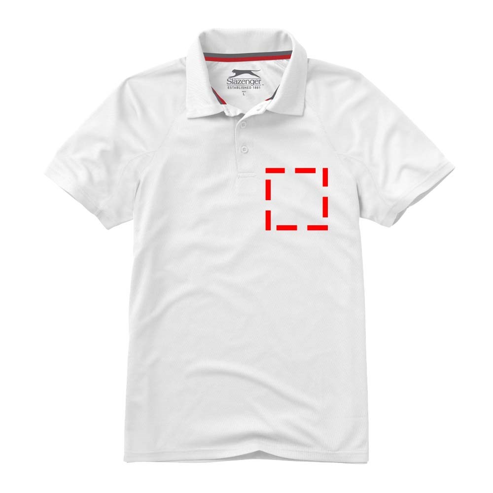 Boord in dezelfde stof. Raglan mouwen. Knopenlijst met drie knopen. Flatlock stiksel. Twee kleuren nektape. Gegraveerde knopen. Transfer maatlabel voor extra comfort.