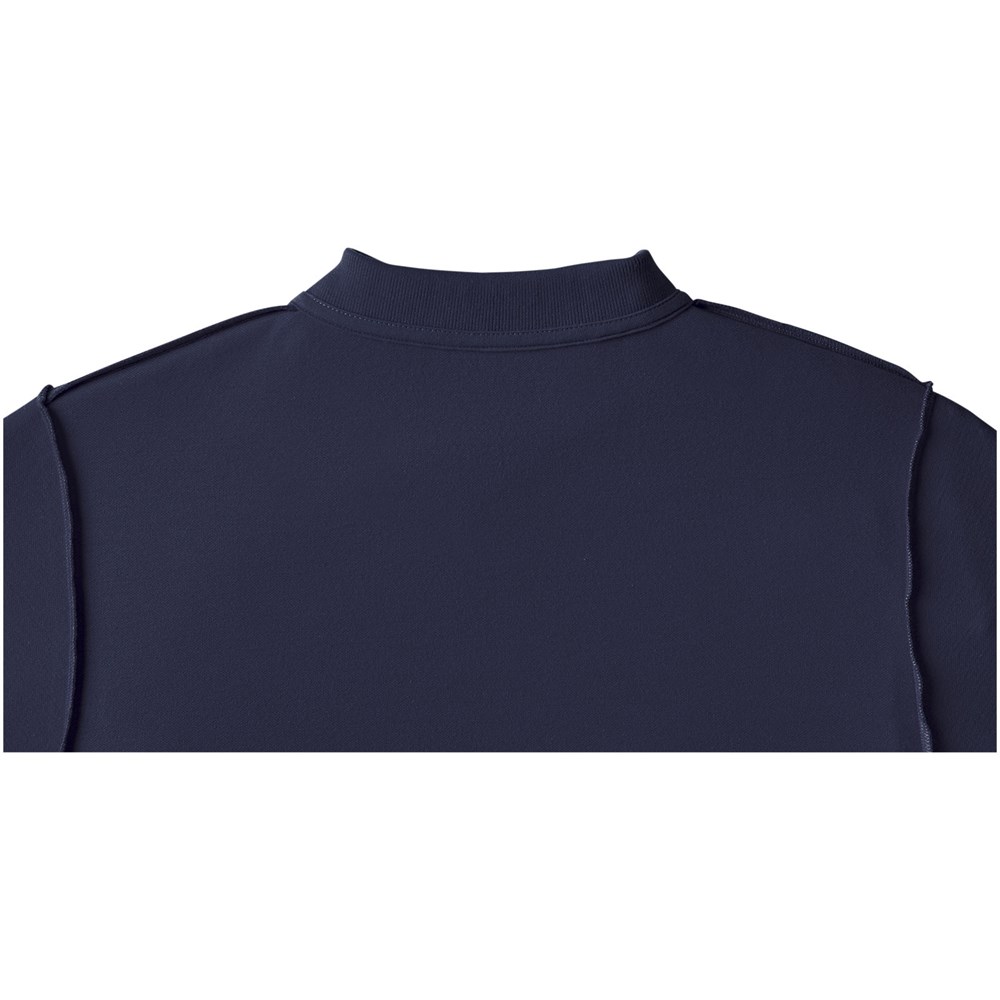 Gepersonaliseerde decoratie opties. Uitneembaar label voor draagcomfort. Vlakgebreide kraag. Plat gebreide rib mouw. Knopenlijst met drie knopen. Dubbele stiksels. Gestanste knoop.