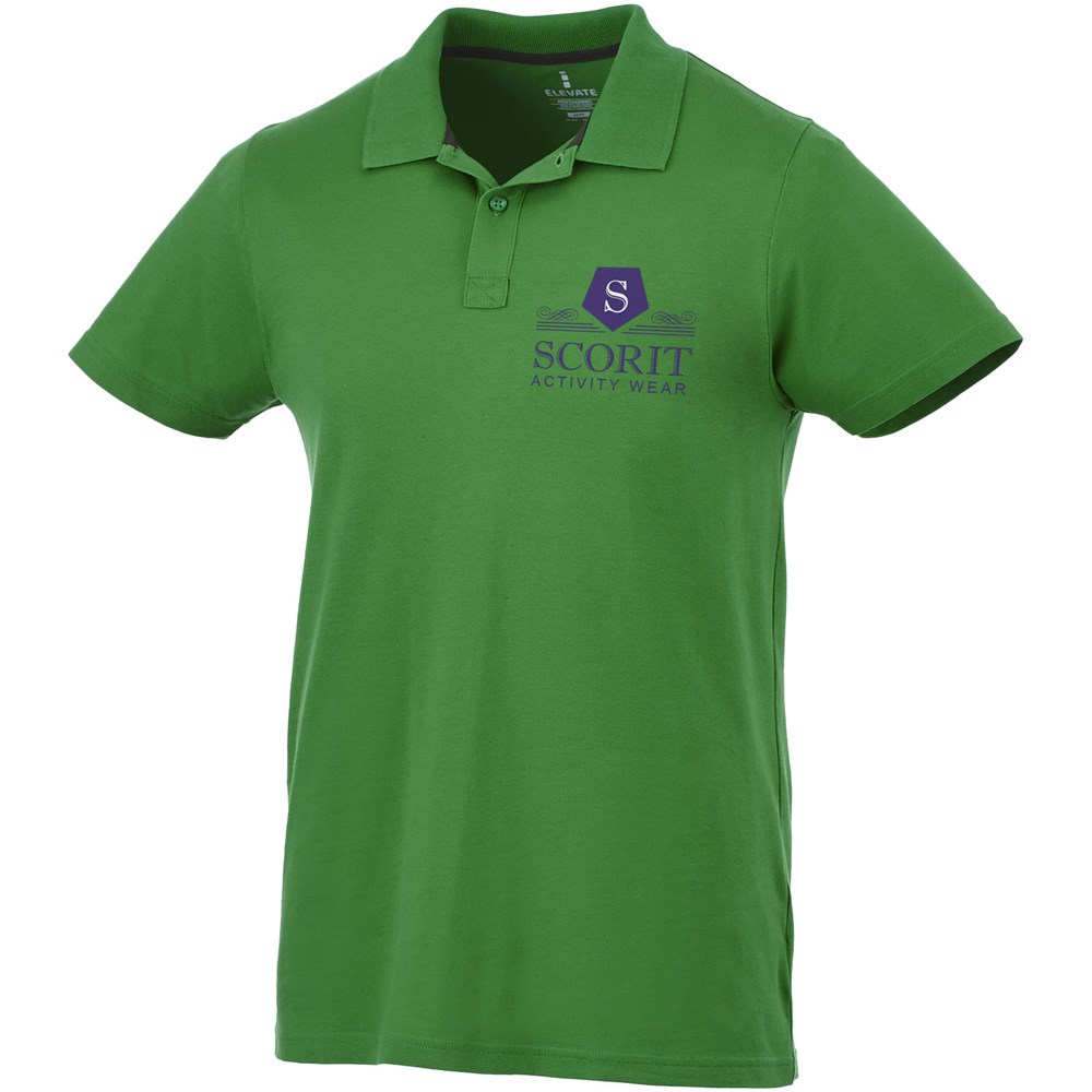 Vlakgebreide kraag. knopenlijst met twee knopen. Dubbele stiksels. Nektape in contrasterende kleur. Gegraveerde knopen. Transfer maatlabel voor extra comfort.