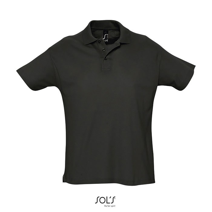 SOL'S SUMMER II Heren Polo 170g/m². Product met een uitstekende prijs-/kwaliteitverhouding. Breed assortiment kleuren. 100% gekamd katoen geribde kraag. Verstevigingsband in de nek. Versterkte knoopsluiting. 3 knoopsluiting in bijpassende kleur. Recht afgewerkte onderkant. Met zijsplitjes met zijnaad.